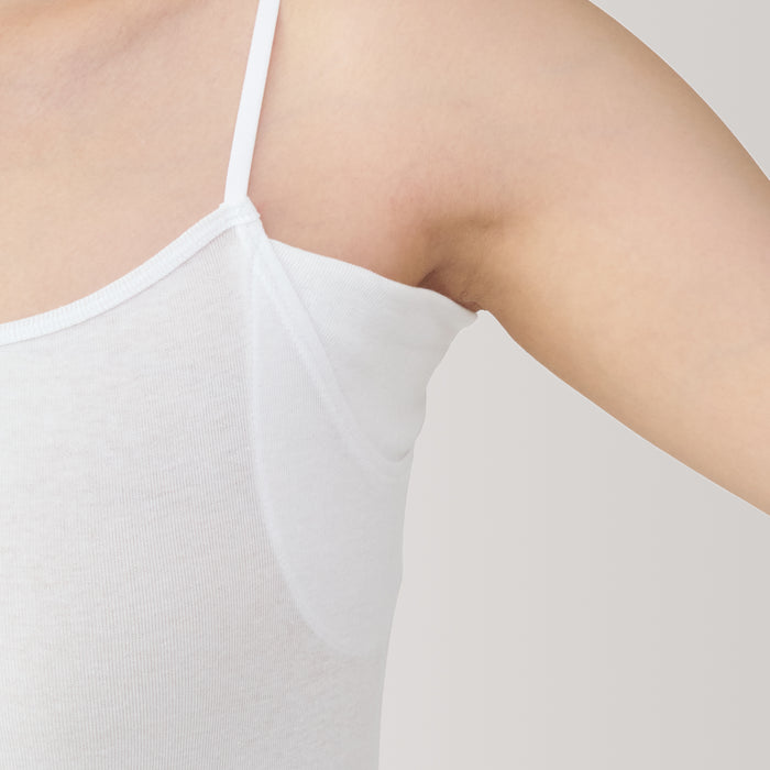 A camisole with sweat pads under the arms to help keep you dry throughout the day and prevent sweat stains on your outer layers. Made from a lightweight, breathable organic cotton material that feels cool on the skin, making it comfortable to wear even in warm weather. The shoulder straps are adjustable for the perfect fit. To prevent irritation, there are no side seams, and care labels and tags are printed on the inner side of fabric.