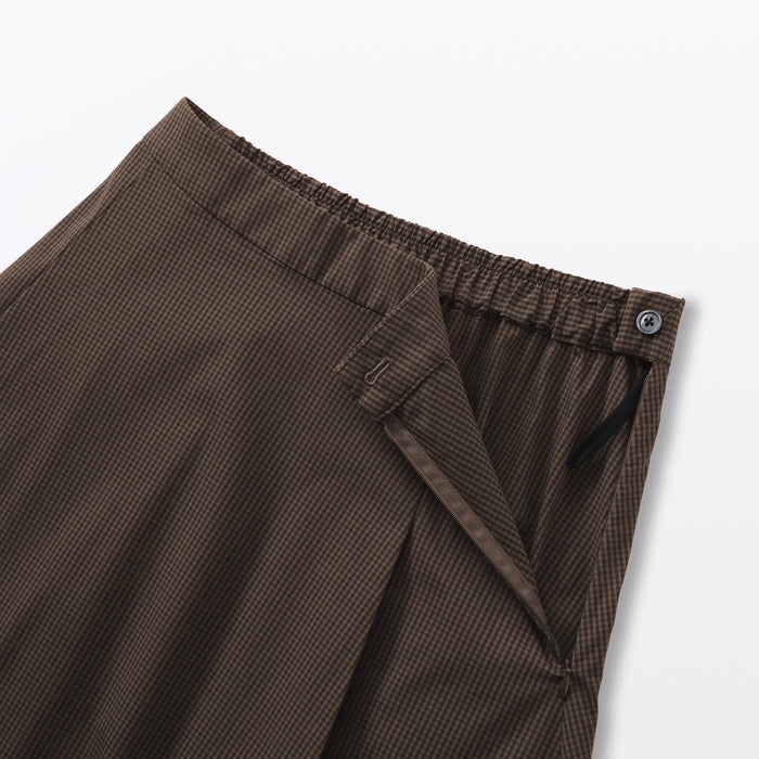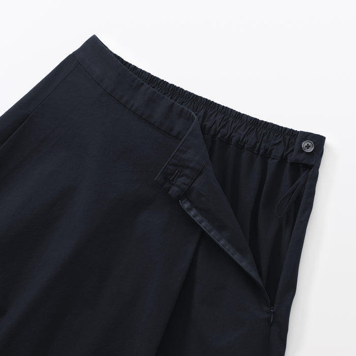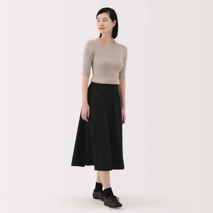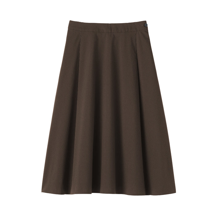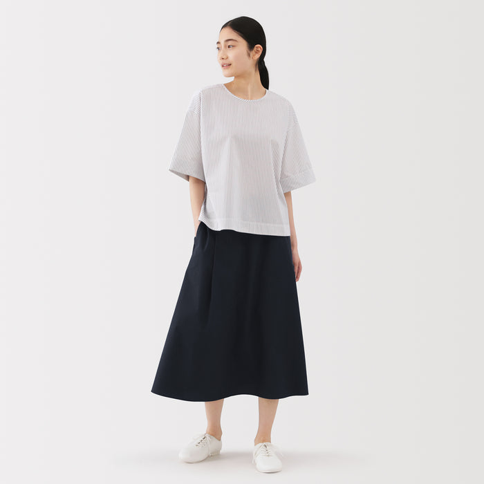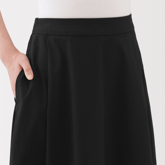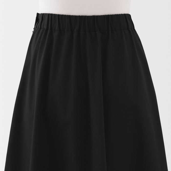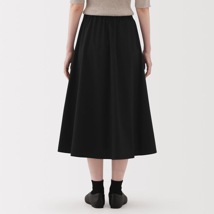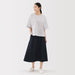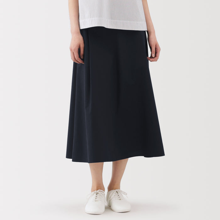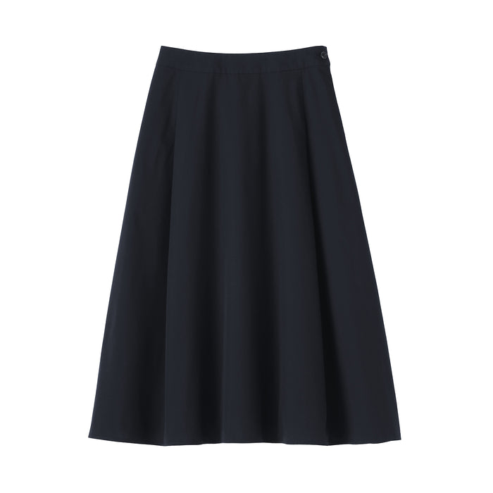 A long skirt with a neat waistline and flattering flared silhouette for a feminine look, and the elastic back makes it easy to wear. It is made from a blend of soft organic cotton and stretch polyester thread, giving it a supple texture that dries quickly and does not wrinkle easily after washing.