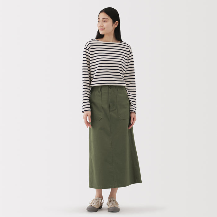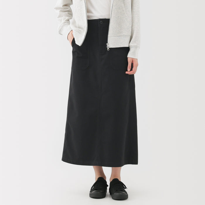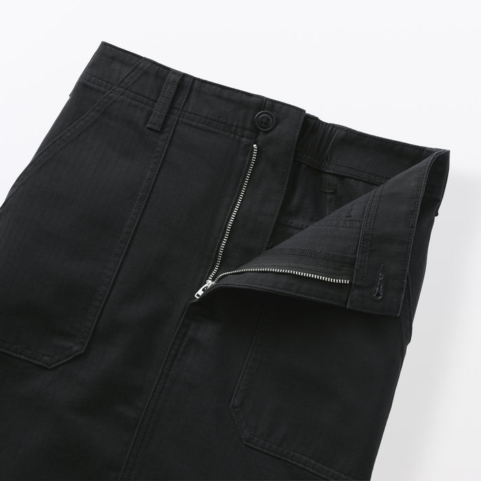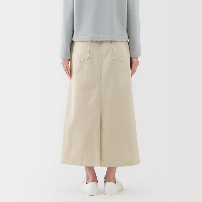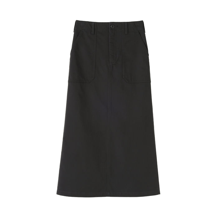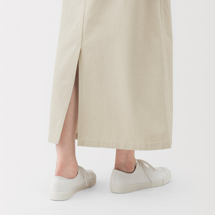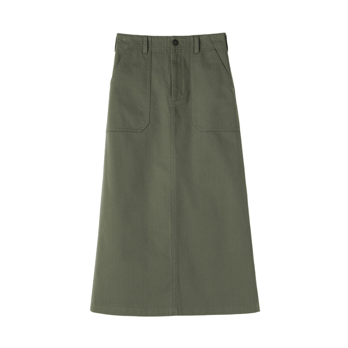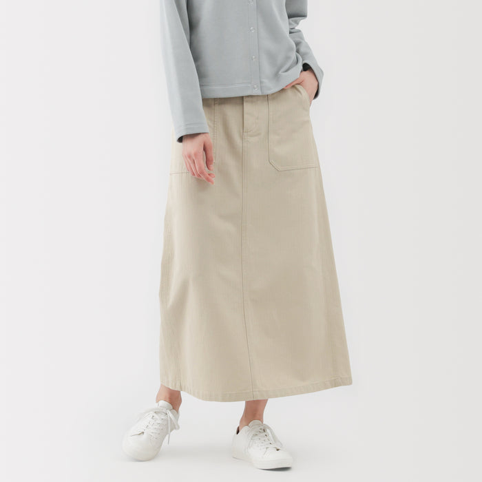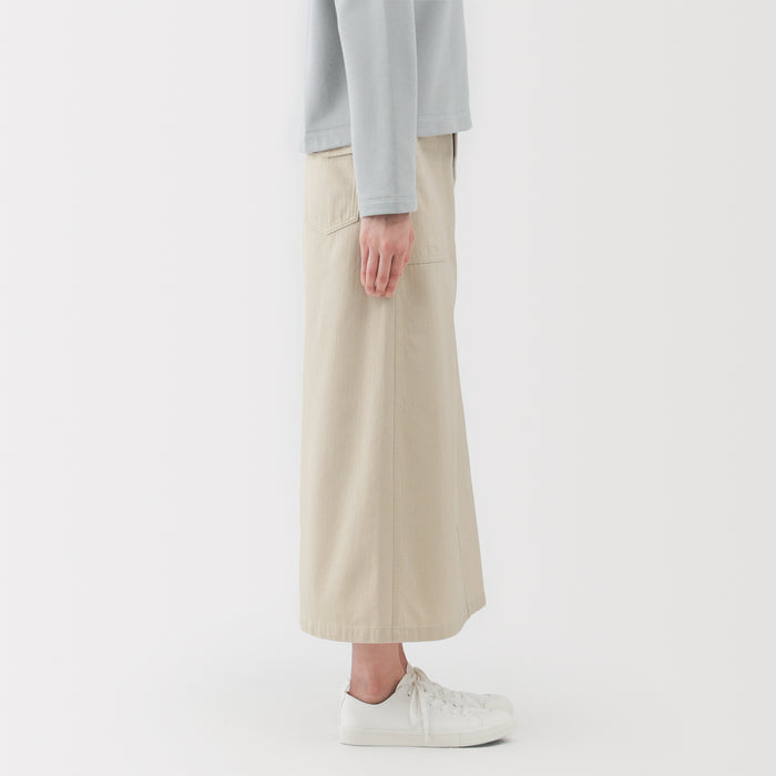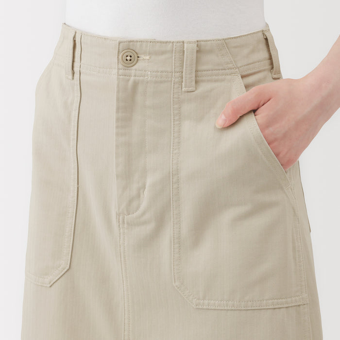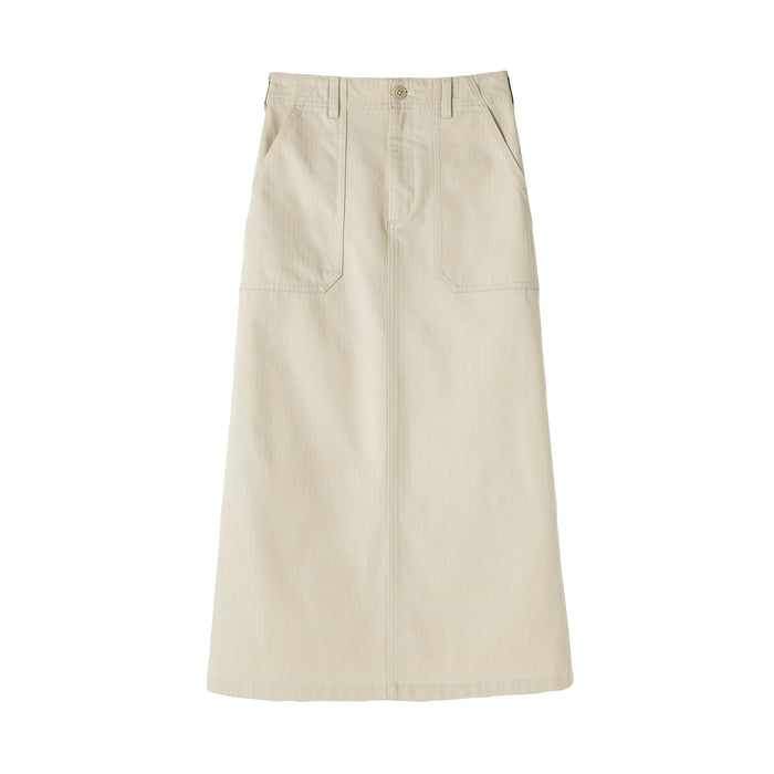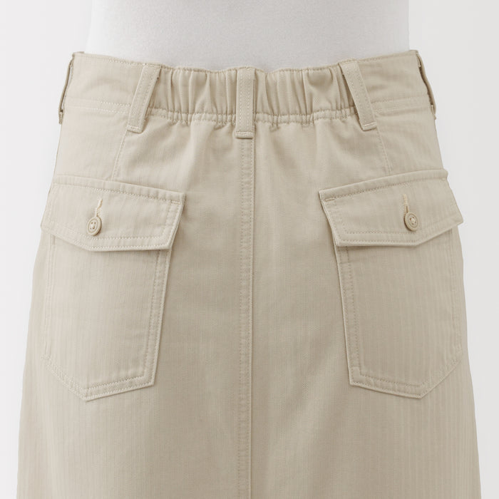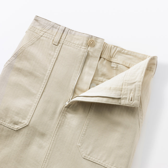 This baker skirt is made from a soft 100% organic cotton fabric, complete with a distinctive woven herringbone pattern. The straight-line silhouette is flattering and the large pockets give it a comfy, casual look.