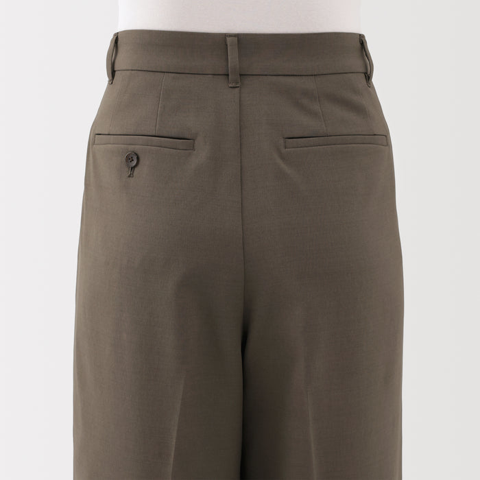 Pants with front pleats and a comfortable straight silhouette, made from thick and water-repellent material that resists creasing after washing. The front opening has a neat look that makes it also suitable for professional occasions as well as casual wear.