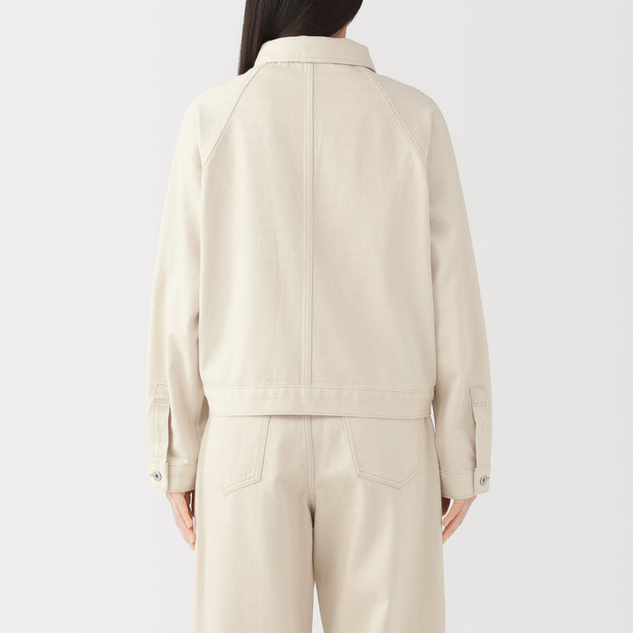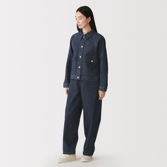 A casual women's denim jacket featuring a natural, lightweight blend of kapok and organic cotton for a comfortable fit. Perfect for everyday wear, this jacket offers both warmth and style.
