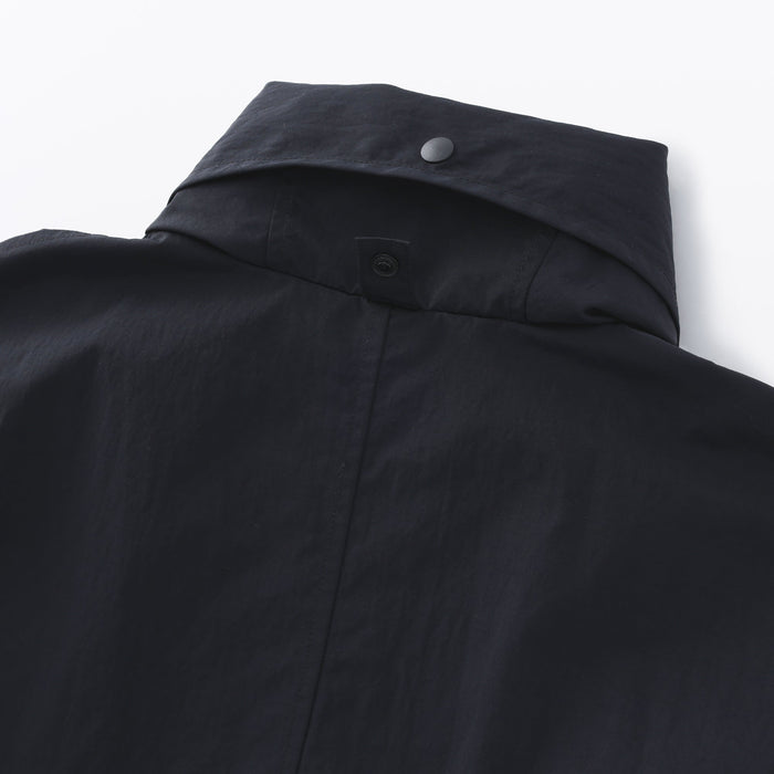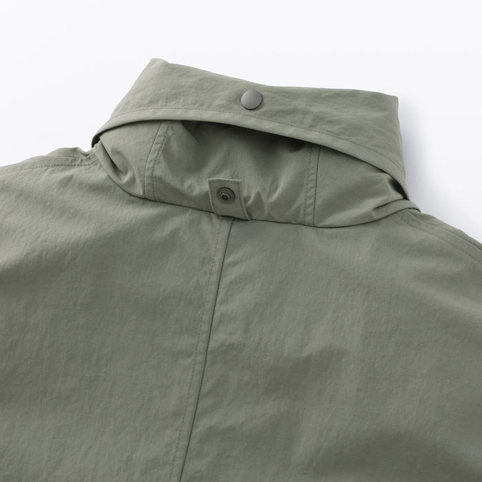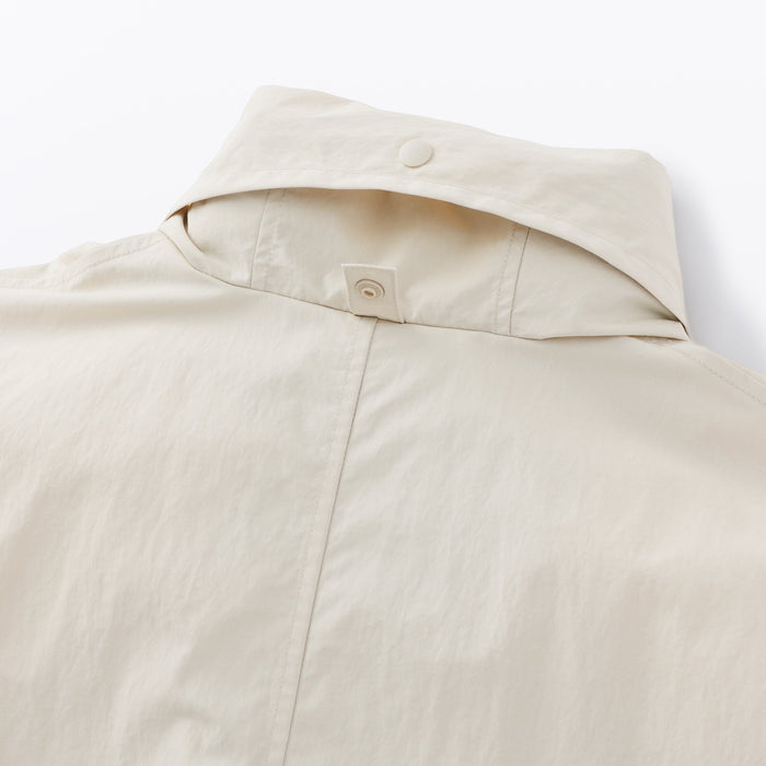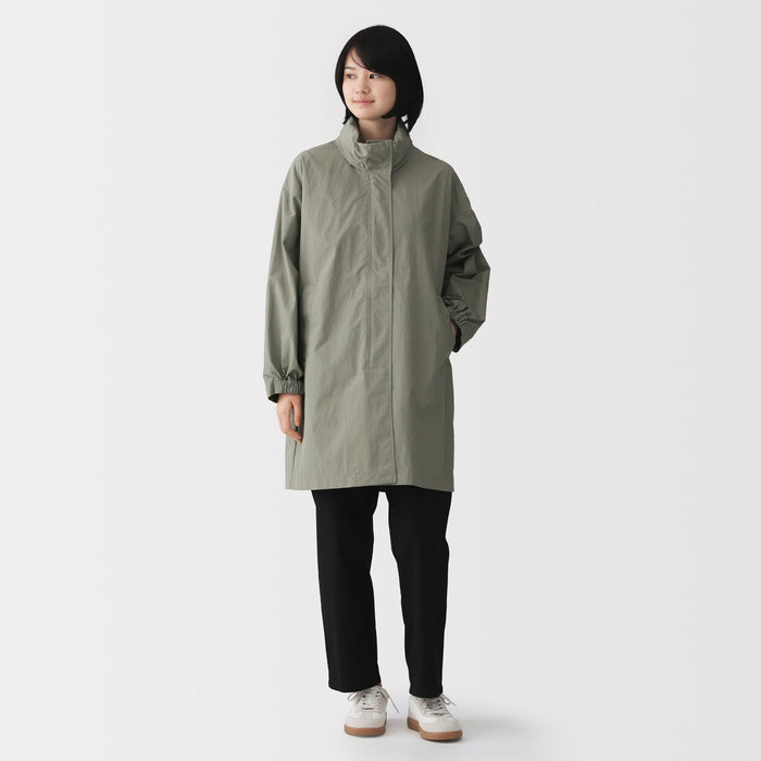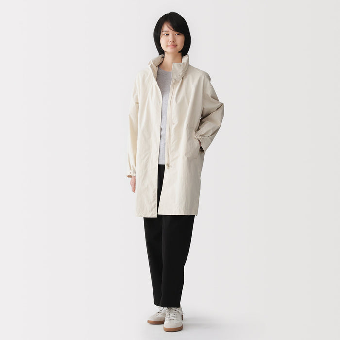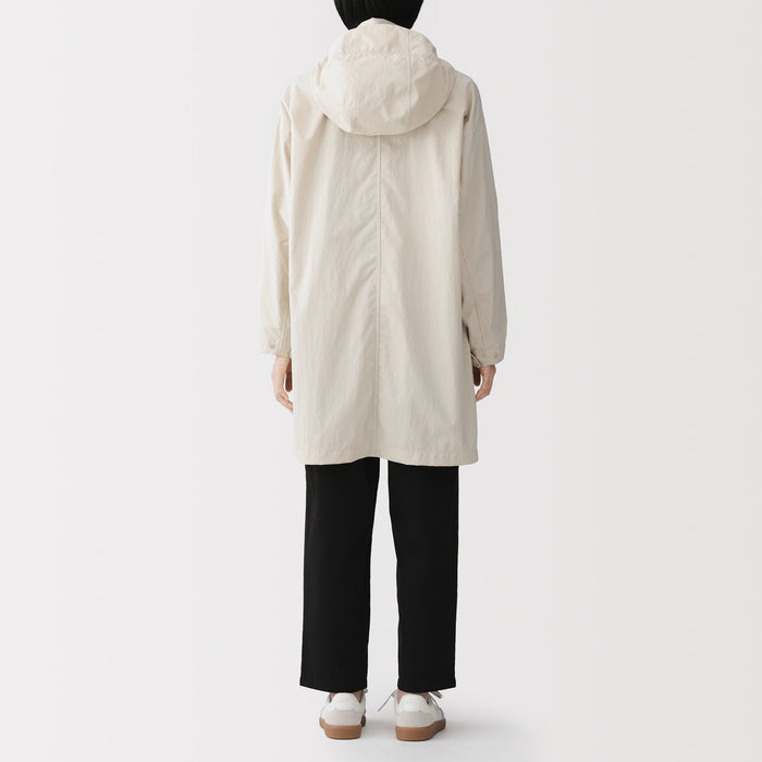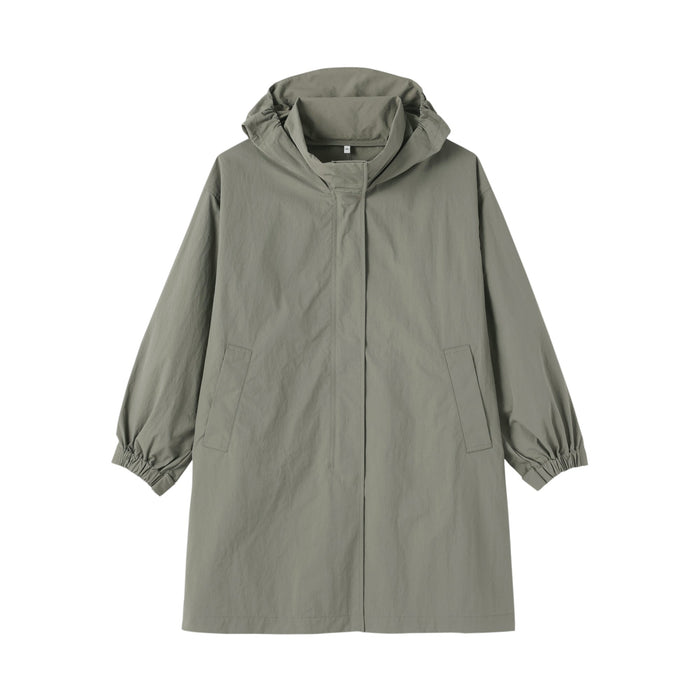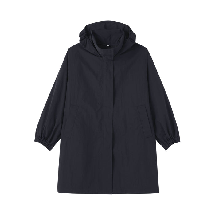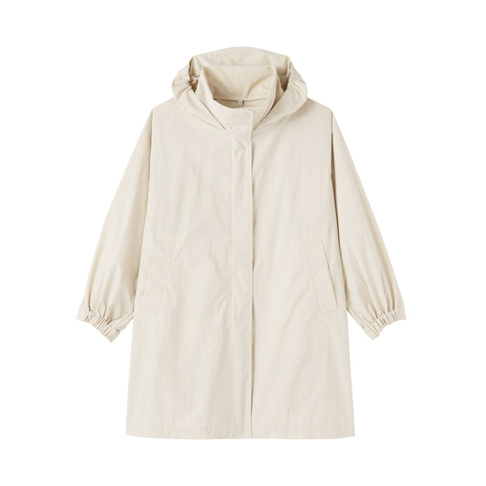 Stay dry and comfortable on rainy days in this women's long coat with a hood, made using a water-repellent nylon material. The hood can be conveniently stored away for sunny weather.ย