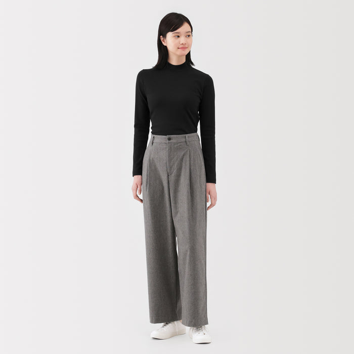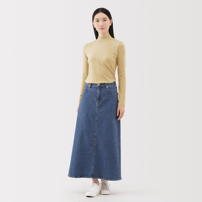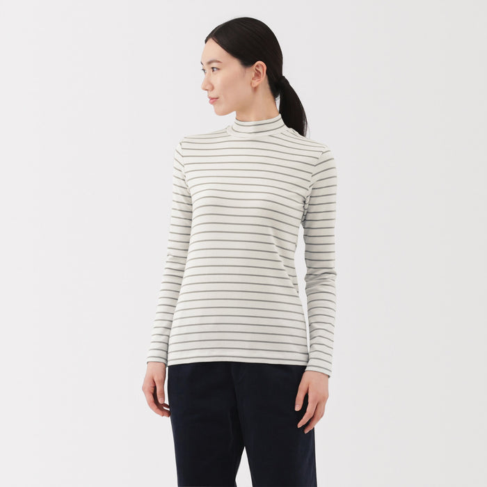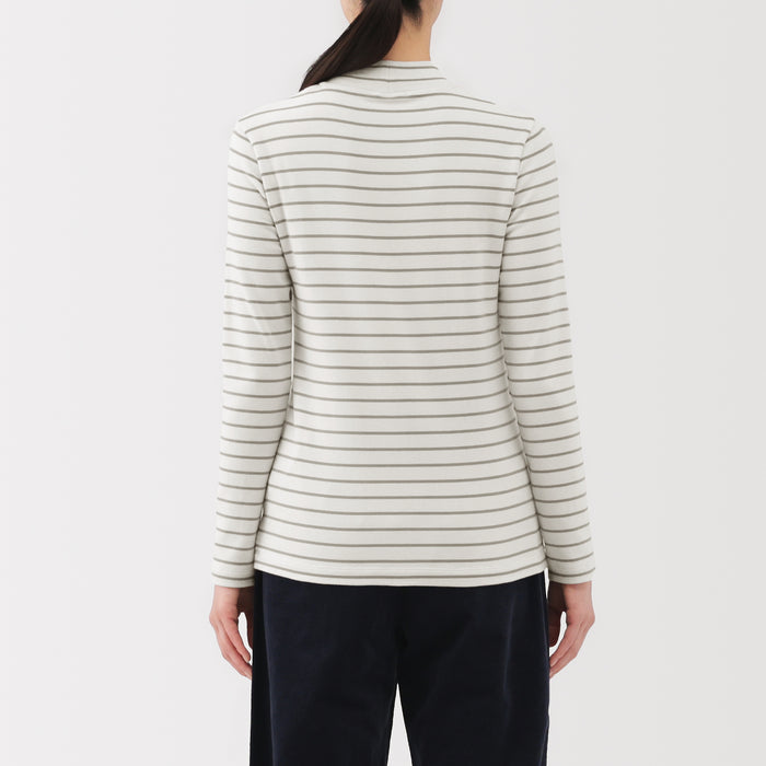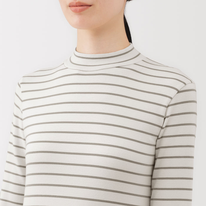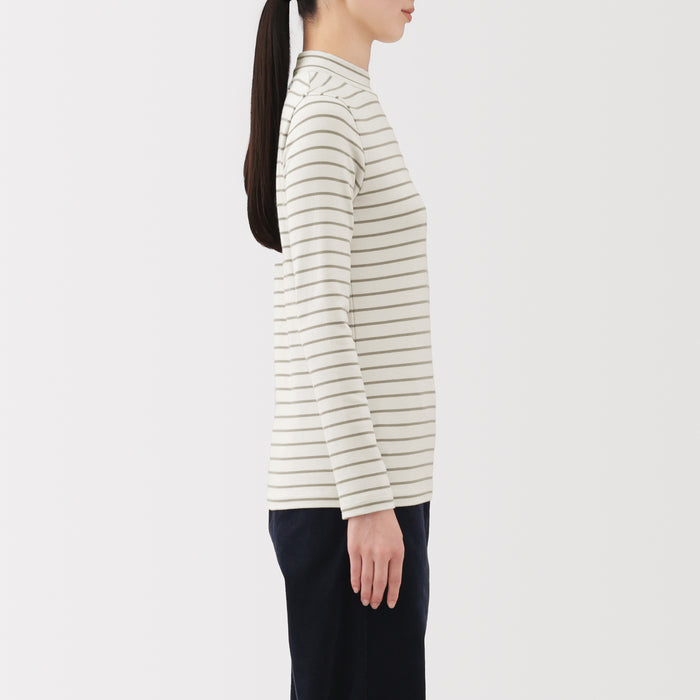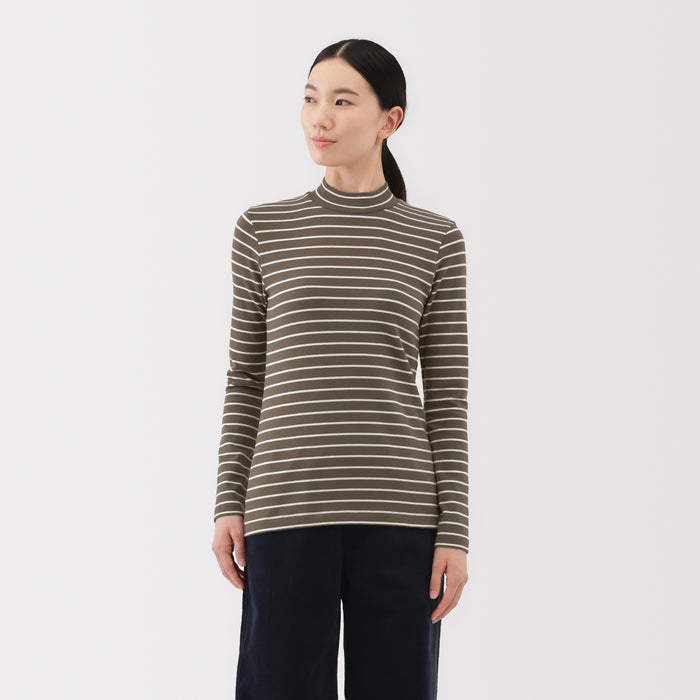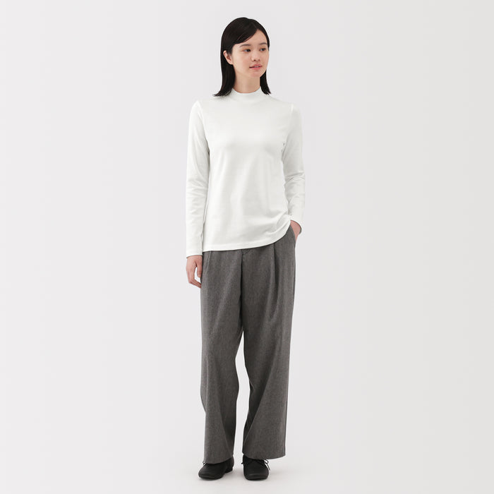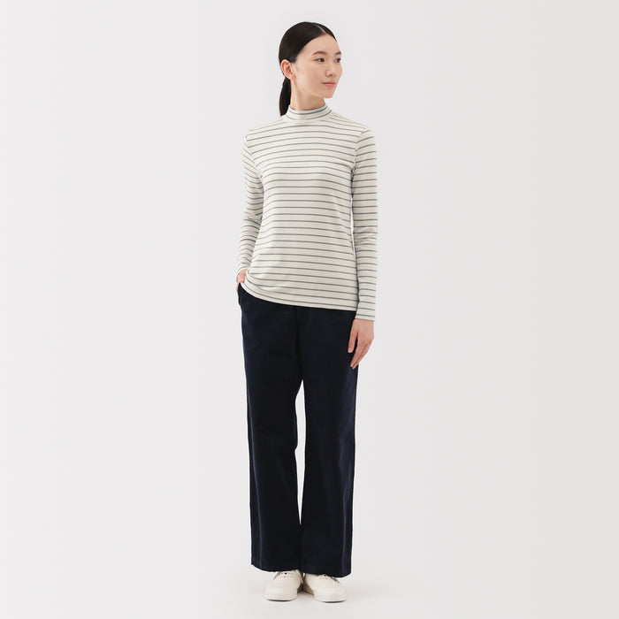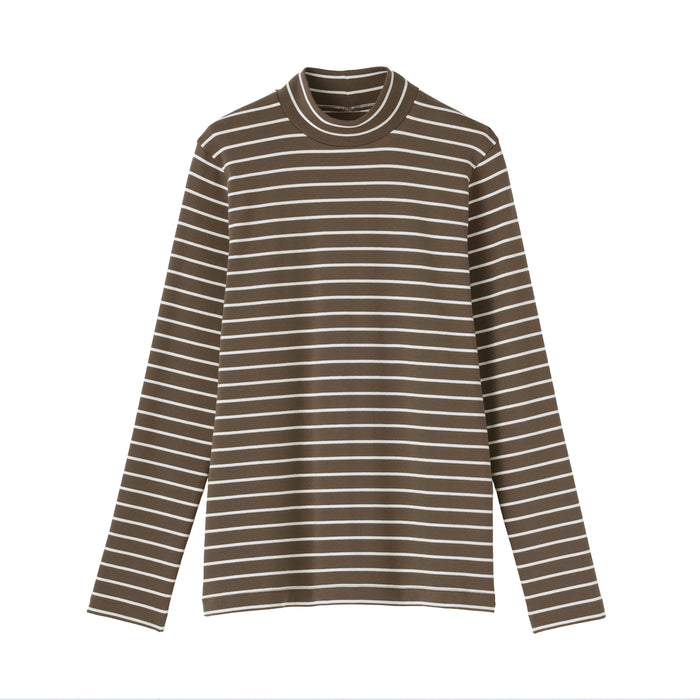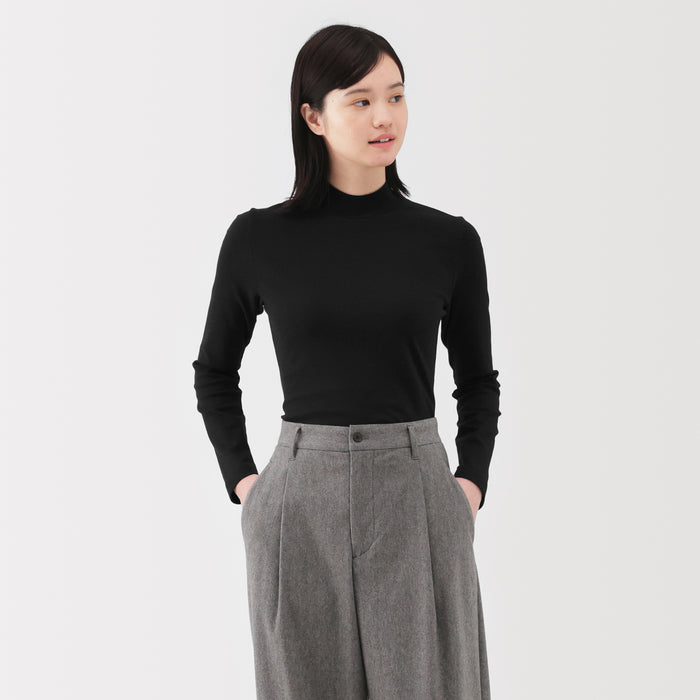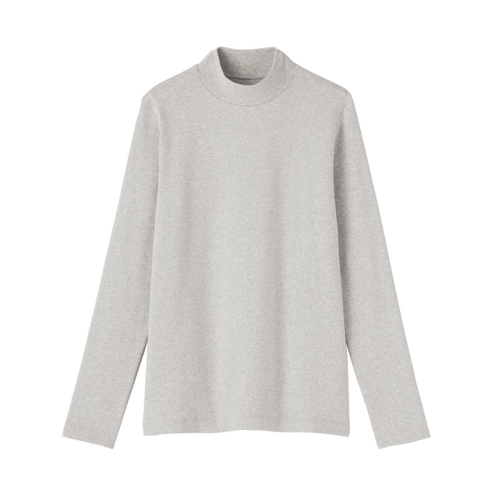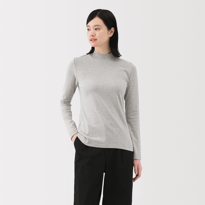 A ribbed mock neck t-shirt with a lightly brushed interior for warmth and a soft, smooth feel against the skin. The high neck fits around the neck to provide protection from the cold. Made with organic cotton.