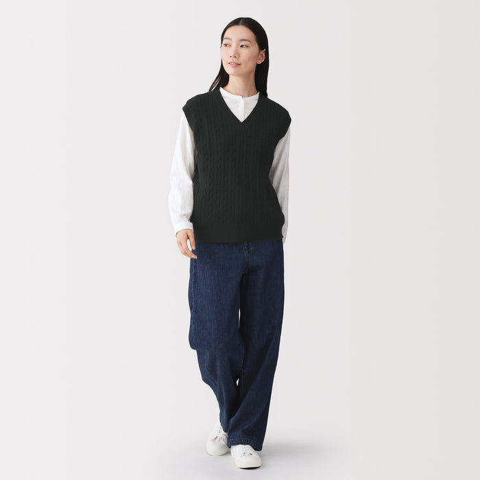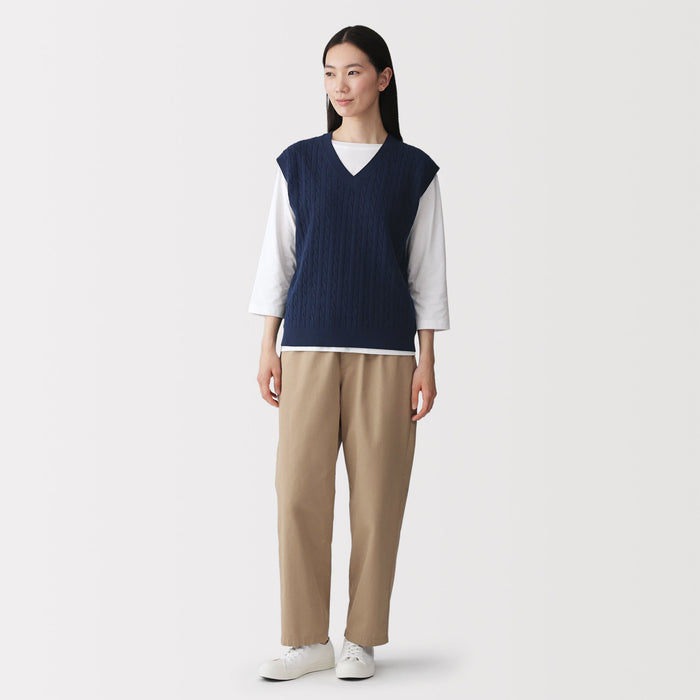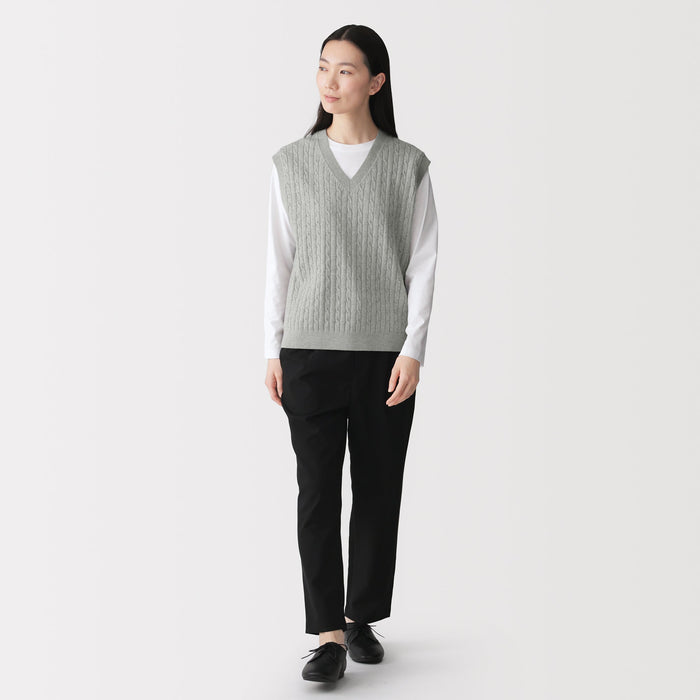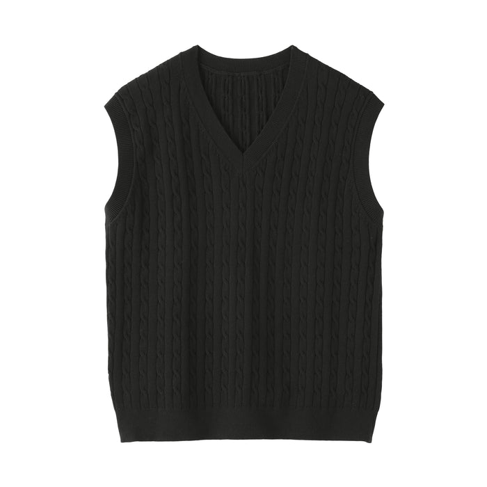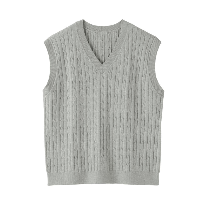 This sweater vest features a cable knit pattern and a relaxed silhouette that provides the perfect amount of room for comfort. The versatile design is easy to layer over a long sleeve t-shirt or a turtleneck, with just the right thickness to keep its structure. Made with a stretchy cotton blend yarn that is soft and smooth. Washable and easy to care for at home for convenience.