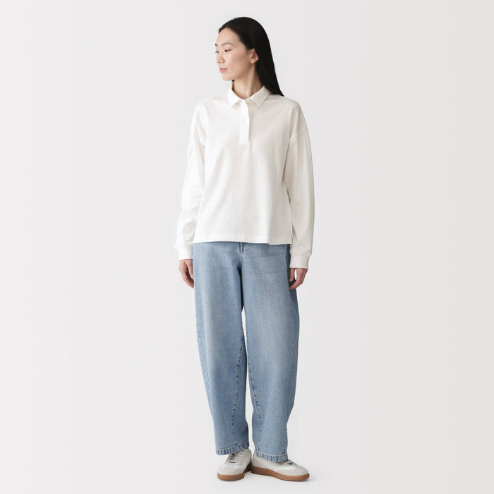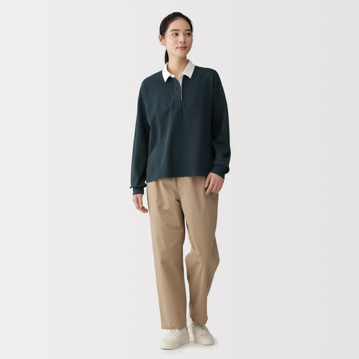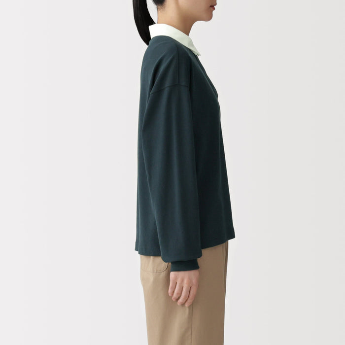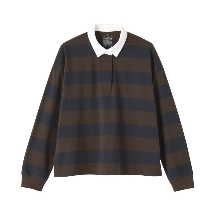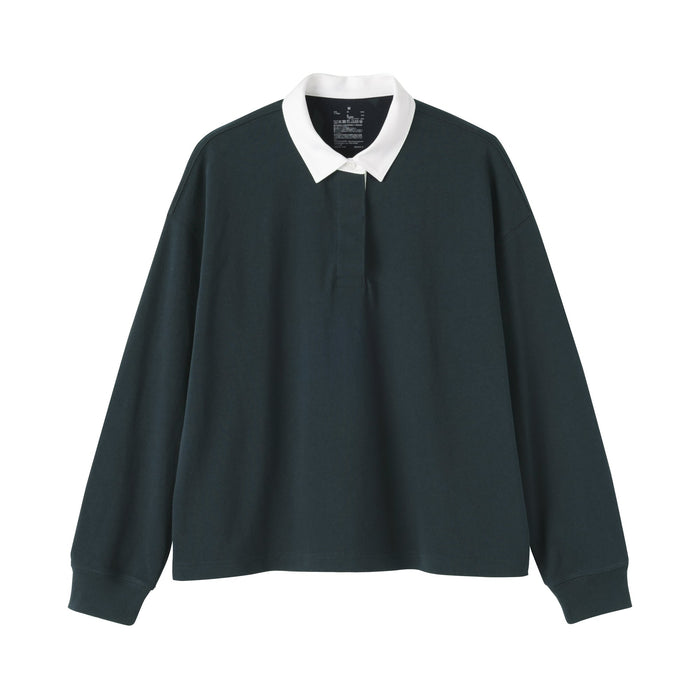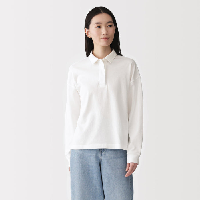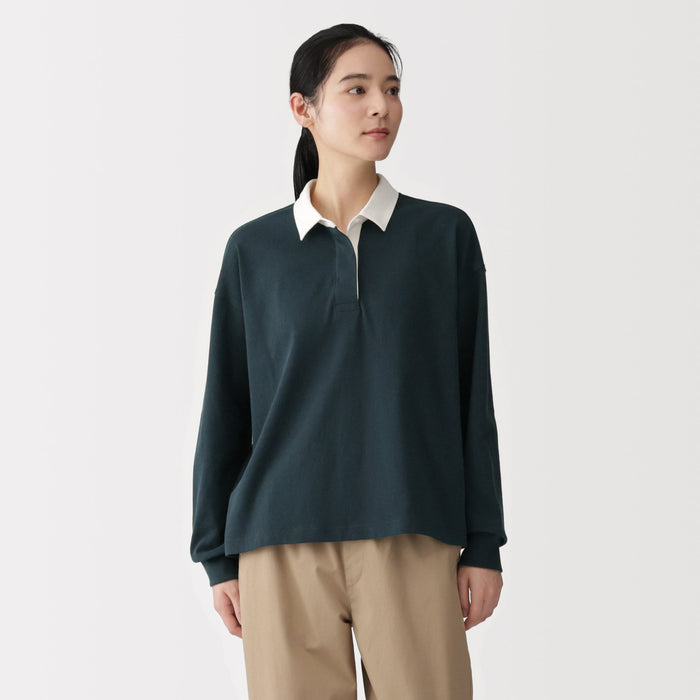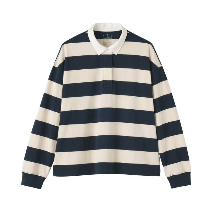 This women's rugby shirt is made with 2-ply organic cotton jersey material, providing the perfect amount of thickness for comfort and durability. The collar and short placket give this shirt a classic, preppy look that suits any outfit.