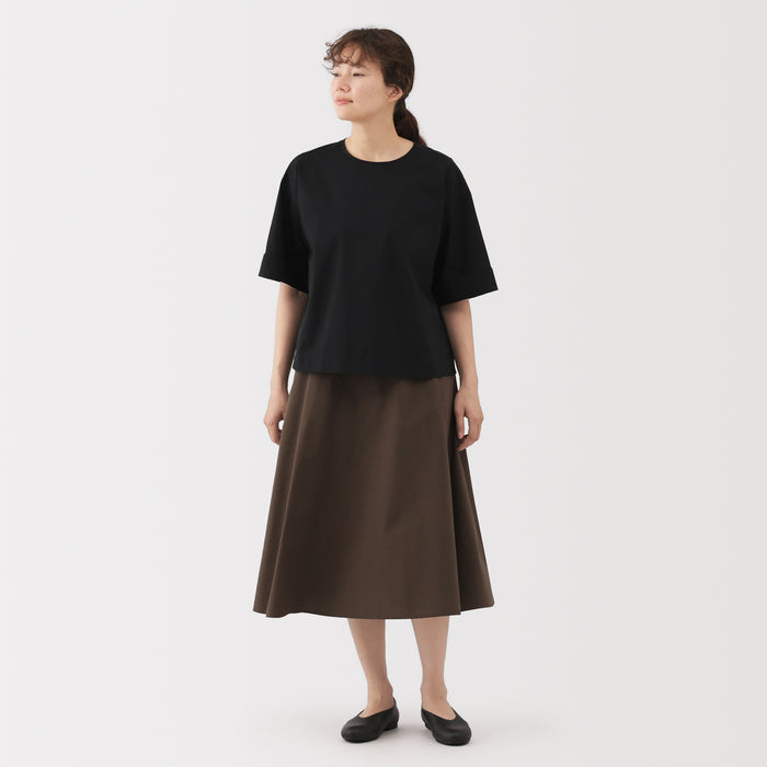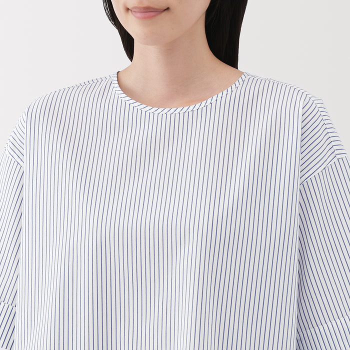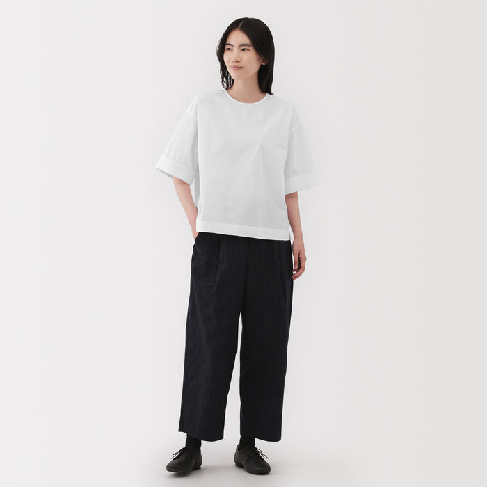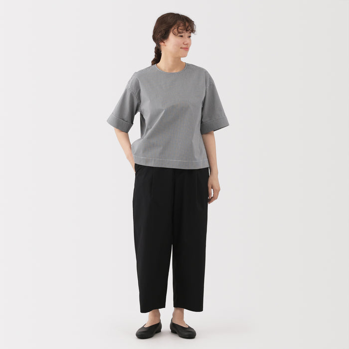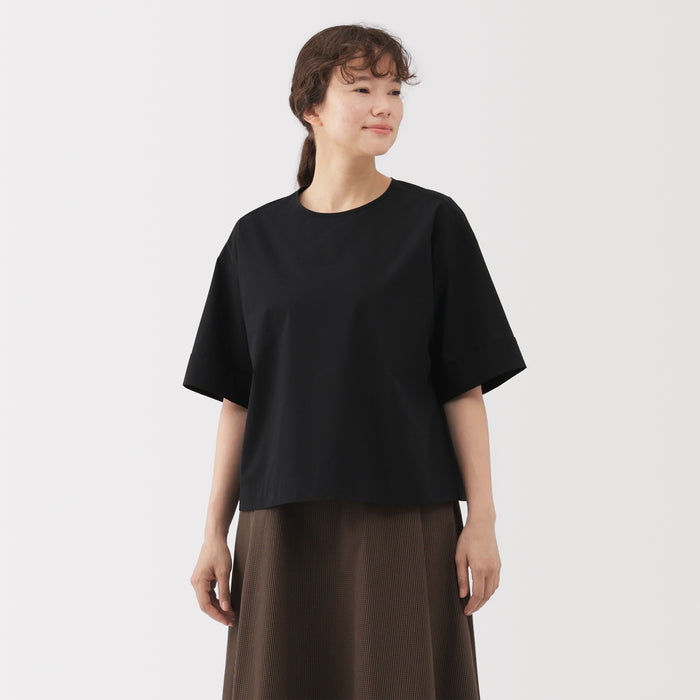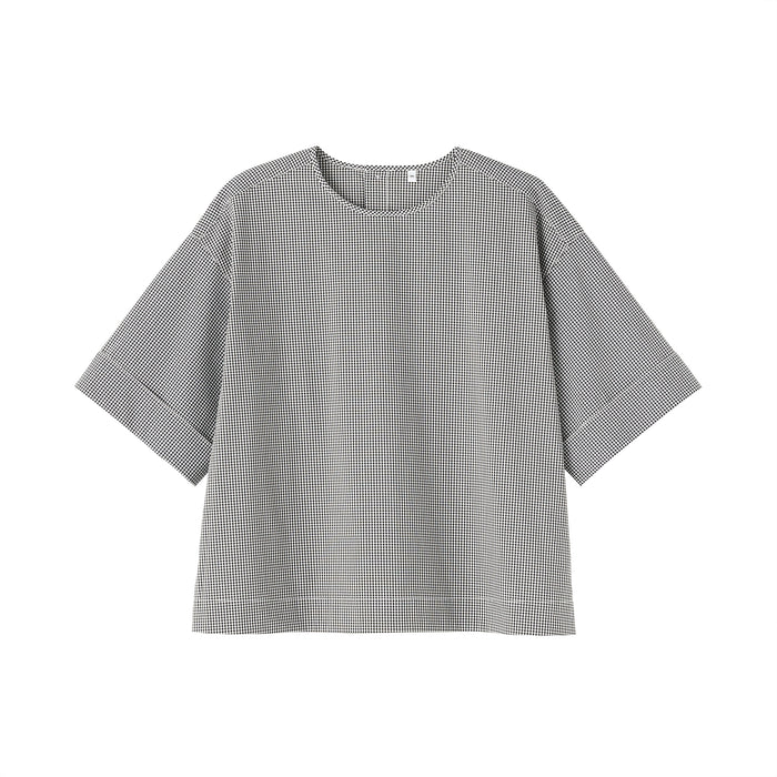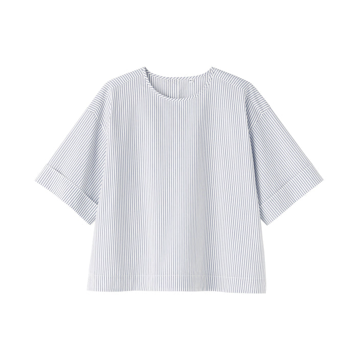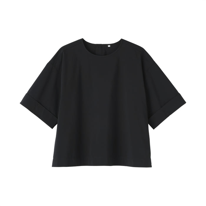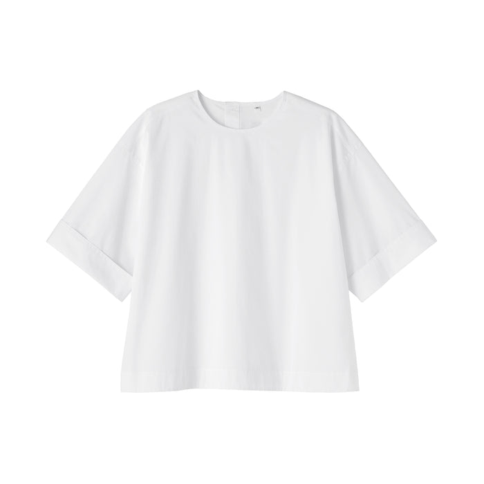 This versatile half sleeve blouse is made from a quick-drying blend of organic cotton and polyester for a smooth broadcloth material that resists creasing even after washing. Its silhouette is relaxed yet elegant, ensuring effortless style and a comfortable wear no matter the occasion. It is designed with distinctive wide cuffs and a shorter length that pairs well with wide pants and flared skirts.