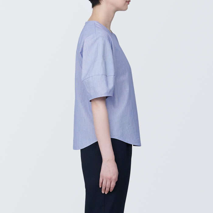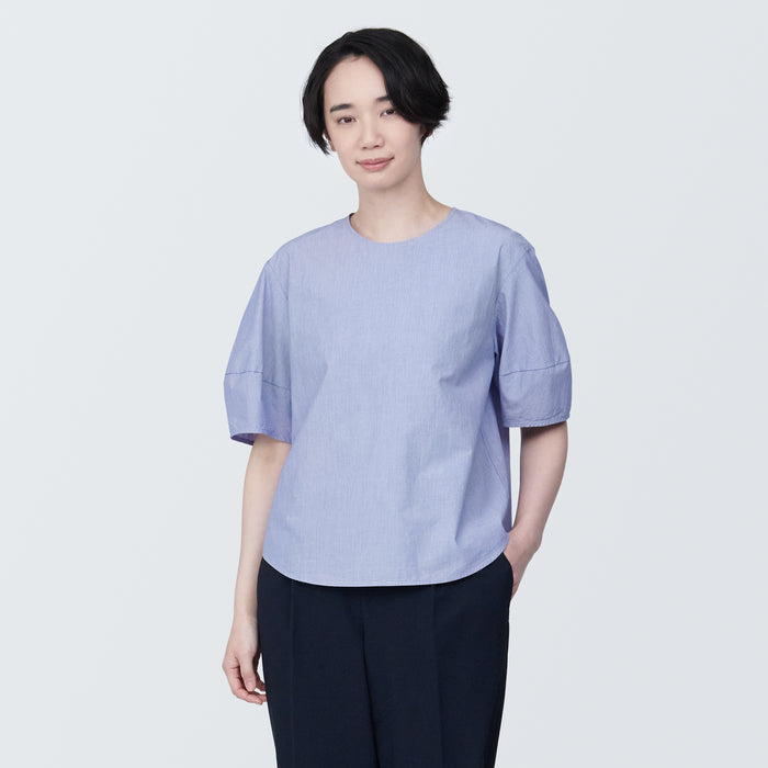 A short sleeve blouse made of cool touch material with a soft, light texture. Made with organic cotton.