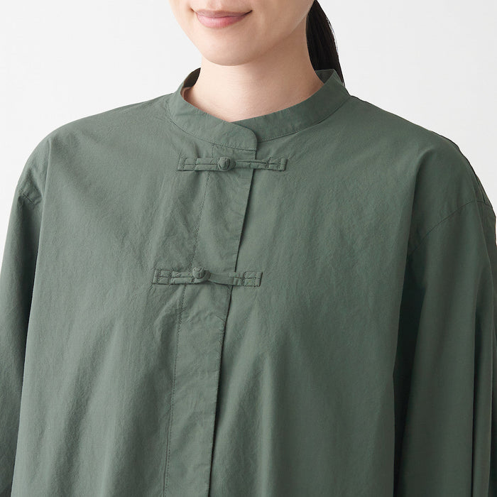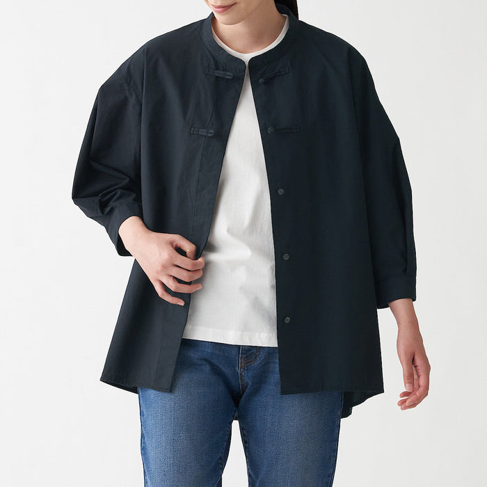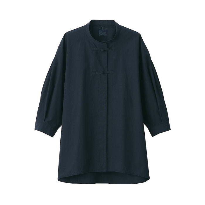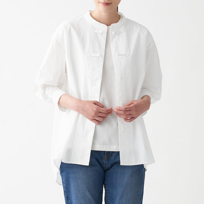 High-twisted fine thread gives a light and structured feel. There are two frog closures near the collar for a unique and elegant look.