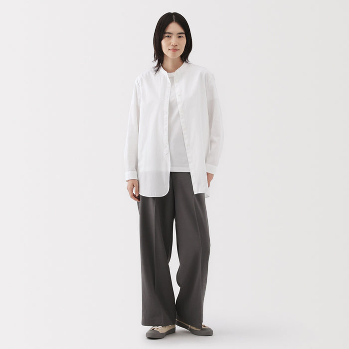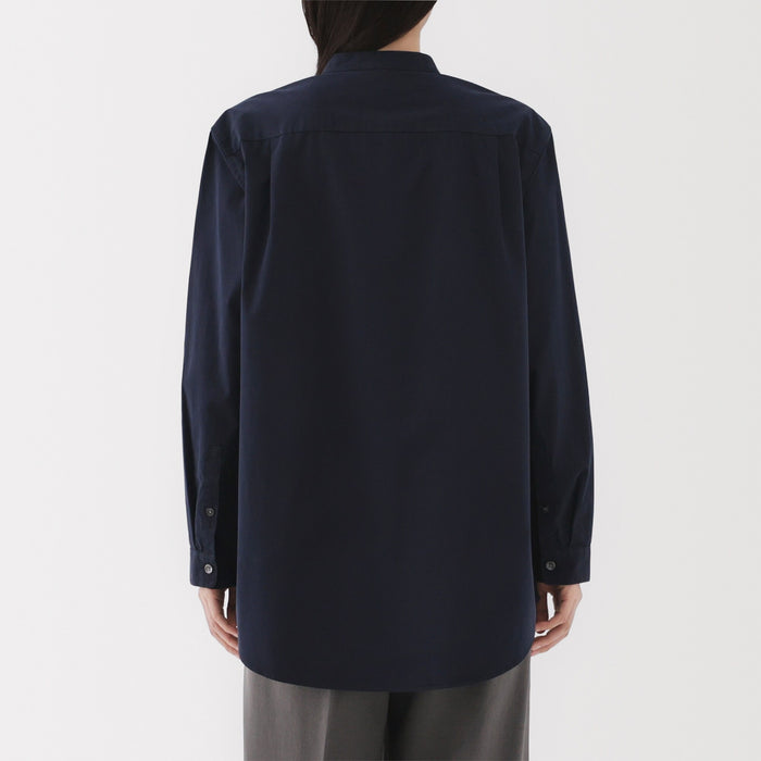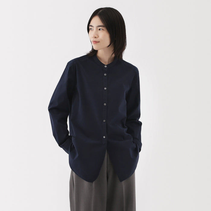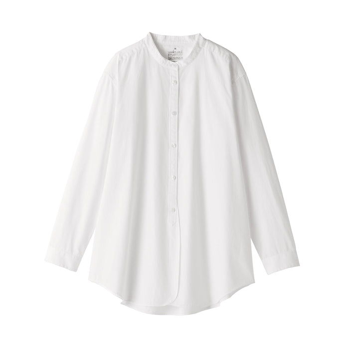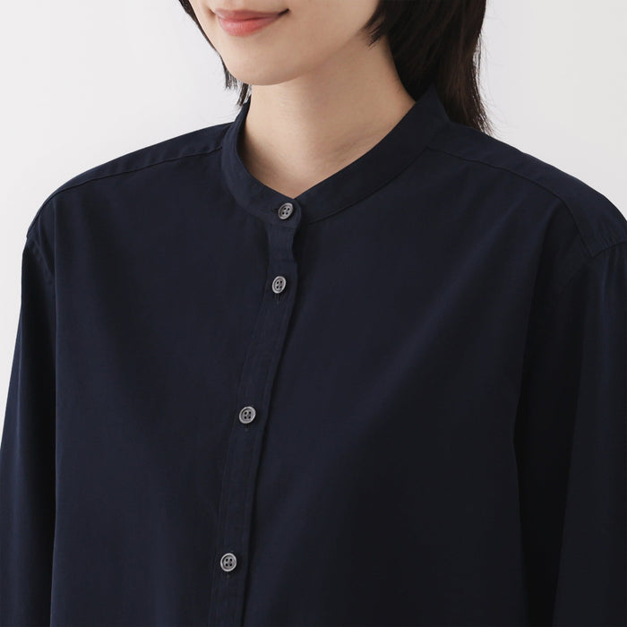 Women's Washed Broadcloth Stand Collar Long Shirt