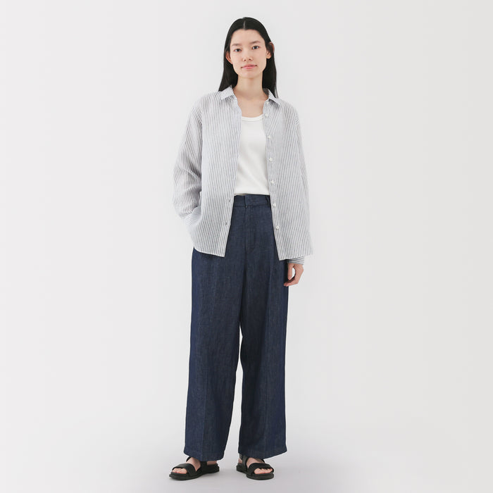 A timeless collared shirt made from airy and cooling French linen. It features a gentle, worn texture that enhances its fit and comfort with each use. Linen is breathable and dries quickly, making it the perfect option for summer.
