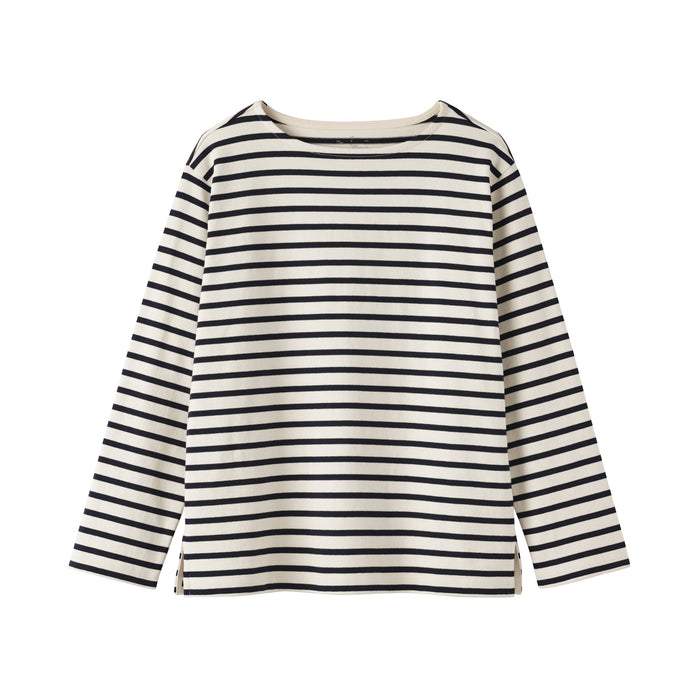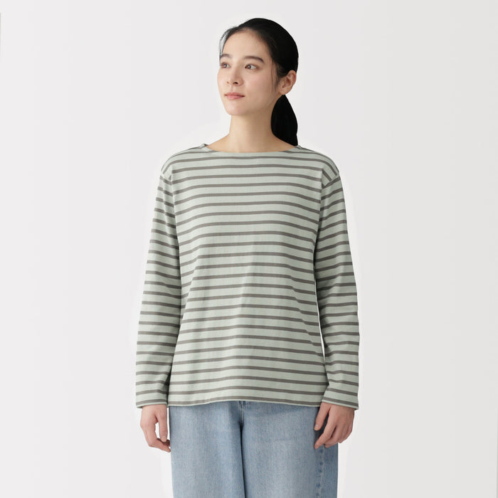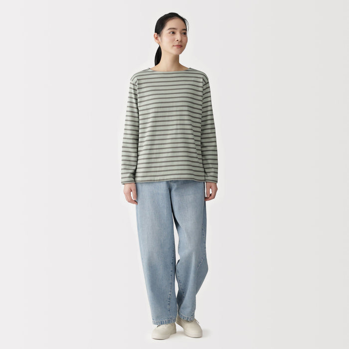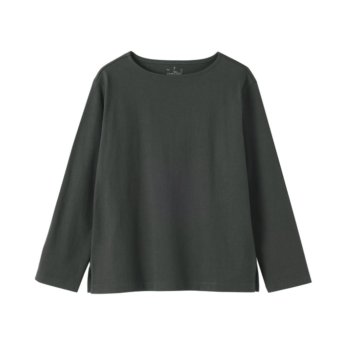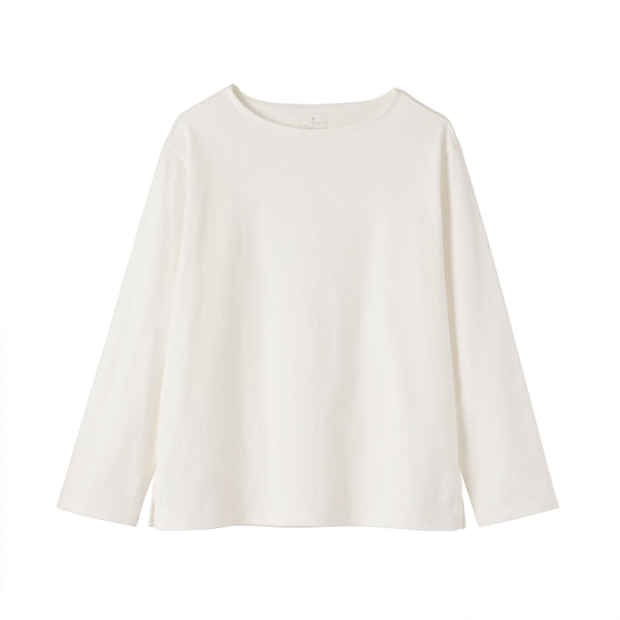 This women's long-sleeved t-shirt features a thick, densely knitted organic cotton fabric that provides durability and comfort. Its sturdy construction minimizes pilling.