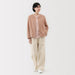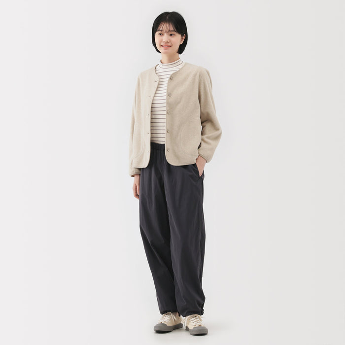 Designed for easy recycling as part of a resource-circulating initiative, all of the components, from the main fabric to accessories such as sewing thread and buttons, are made from the same recycled polyester material. This eliminates the need for complicated processes such as disassembly and material sorting during recycling.