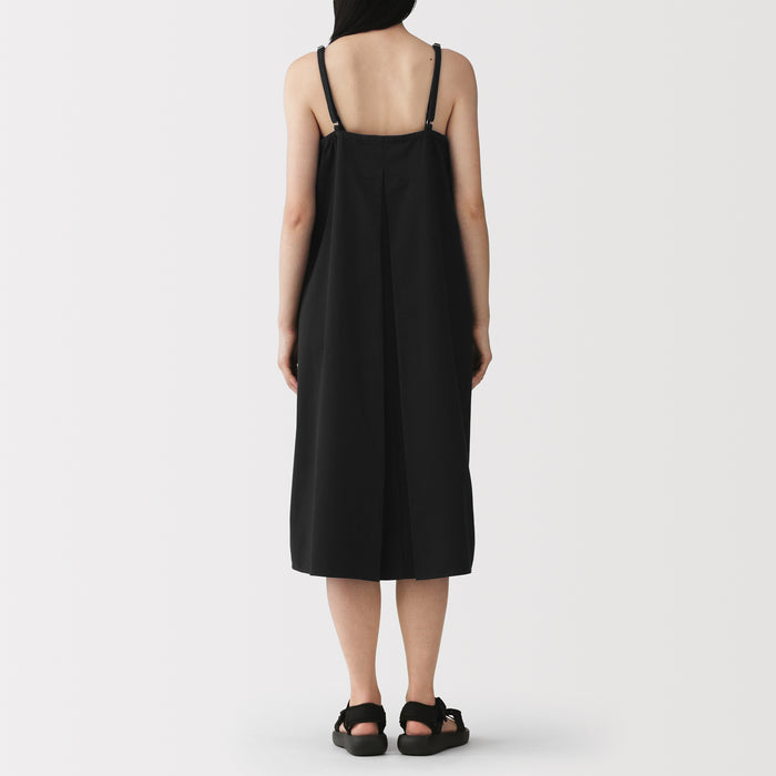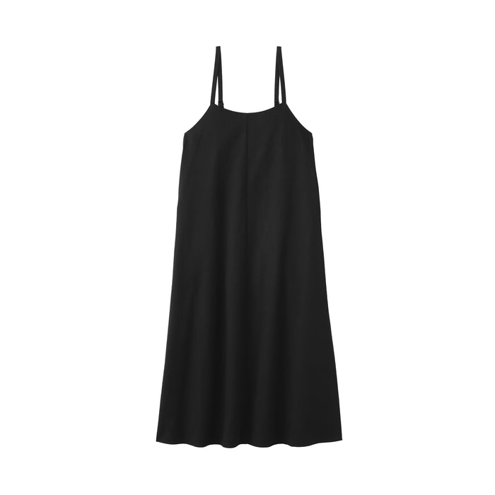 An airy twill camisole dress that is perfect for wearing on its own or layering over a t-shirt on warm days. It features convenient side pockets, adjustable shoulder straps, a box pleat in the back that gives it more volume. Made with a lightweight blend of organic cotton and kapok fiber, an environmentally friendly plant grown without pesticides. By using a fabric that mixes kapok with cotton, it is softer and lighter than conventional 100% cotton.