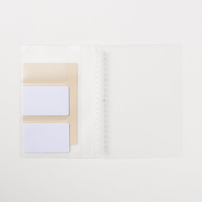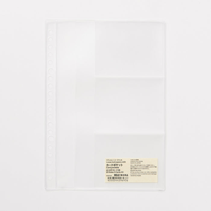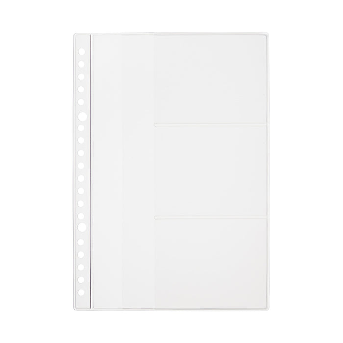 Customize your binder or notebook with this insert for holding cards. The large pocket is convenient for storing receipts and postcards, while the 3 small pockets on the reverse side are great for holding business cards. Only for A5 Size with 20 holes, contains 1 sheet.