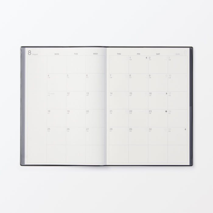 B5 Dark Gray Monthly/Weekly Planner From Aug. 2025 - Mon. Start