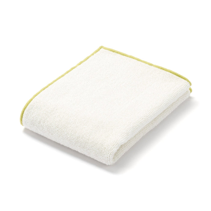 This pile weave hand towel is great for drying wet hands or washing your face. The perimeter is made with narrow stitching and pile all the way to the edge, so it doesn't take up much space when folded.