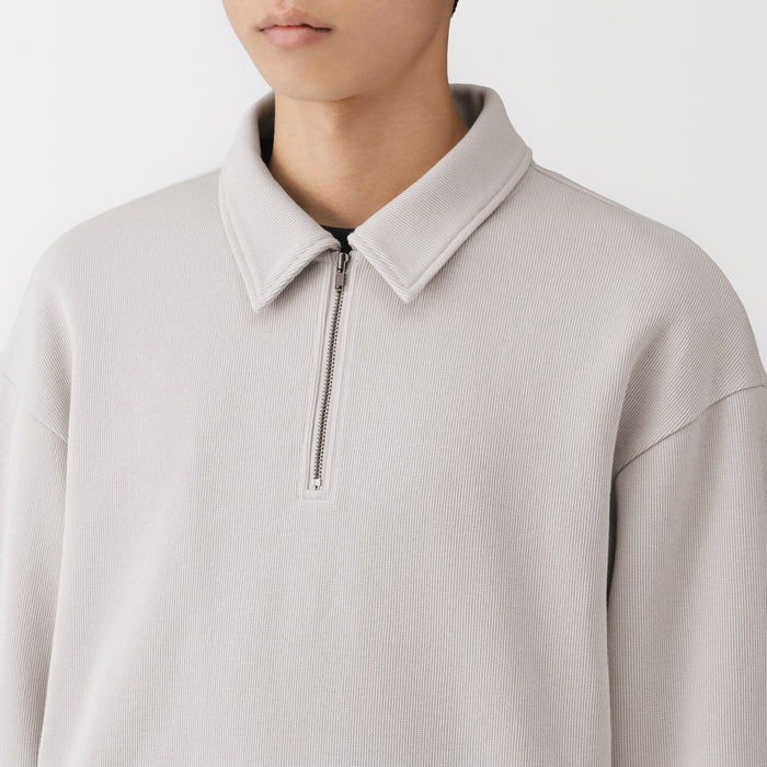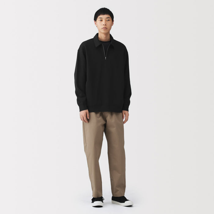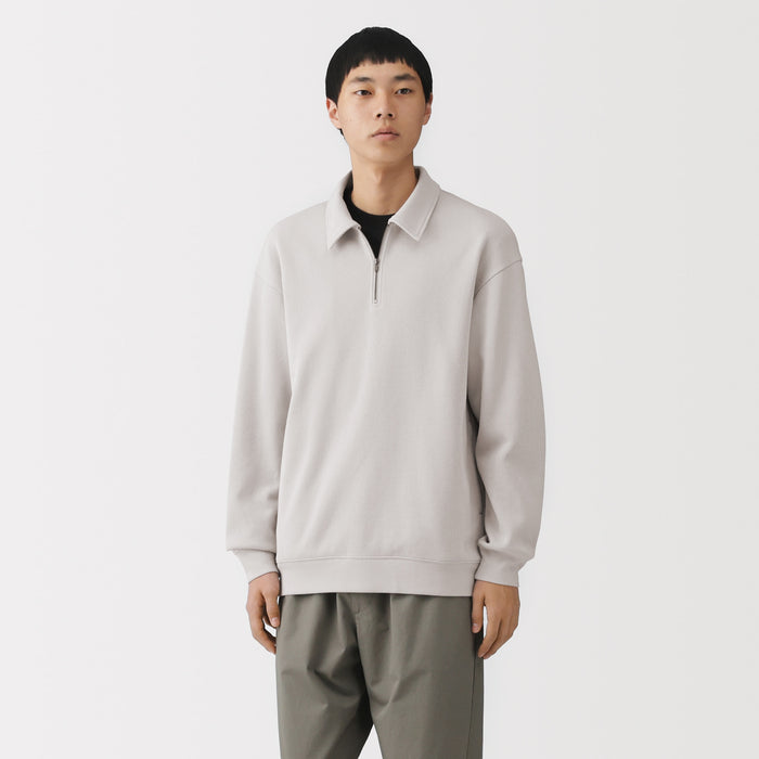 This men's collared pullover is made with a blend of cotton and polyester. It is knitted in a double layered structure that keeps it airy and lightweight, with just the right amount of thickness for comfort. The half-zip design with a collar makes it suitable for a sophisticated look.