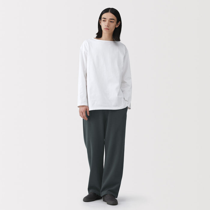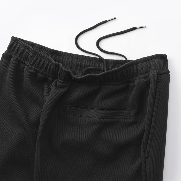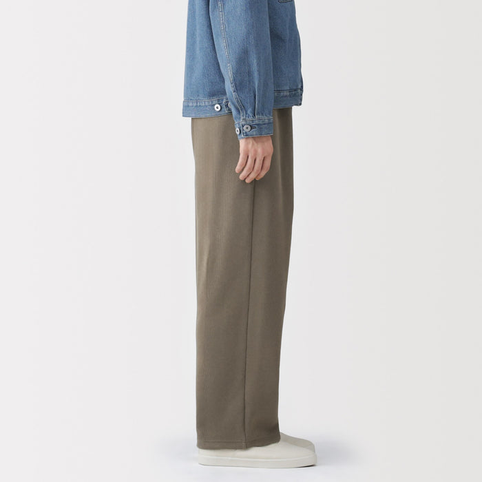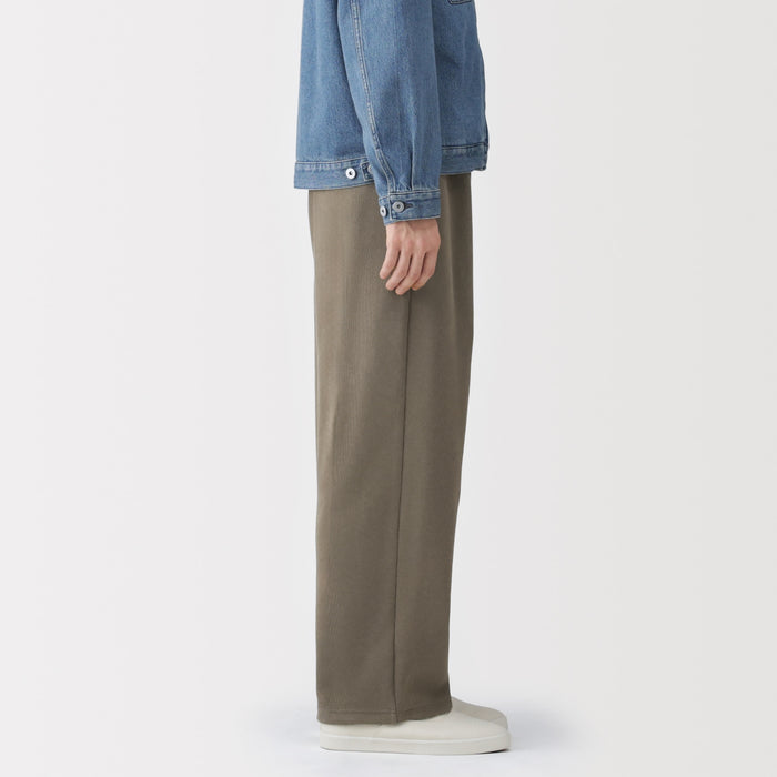 Relax in these comfortable men's sweatpants, made with a blend of cotton and polyester. It is knitted in a double layered structure that keeps it airy and lightweight, with just the right amount of thickness. The ribbed knit material gives them a sophisticated look, while the relaxed fit keeps them comfortable to wear. The hem can be adjusted and tightened to change the silhouette of the legs.