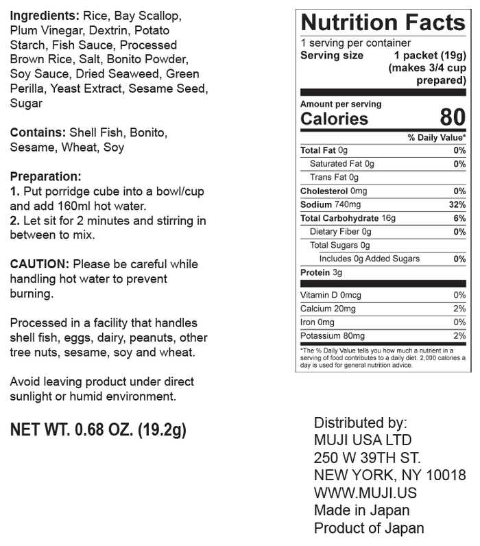 This rice porridge contains a delicious mixture of brown rice, sesame, scallops, and seaweed for a satisfying texture. The refreshing plum flavor makes it even more enjoyable.