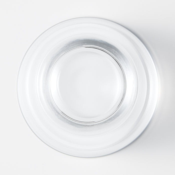 A simple, stackable glass cup made with a curved design to perfectly contour to the shape of your hand for comfort. Comes in 3 sizes to choose from.