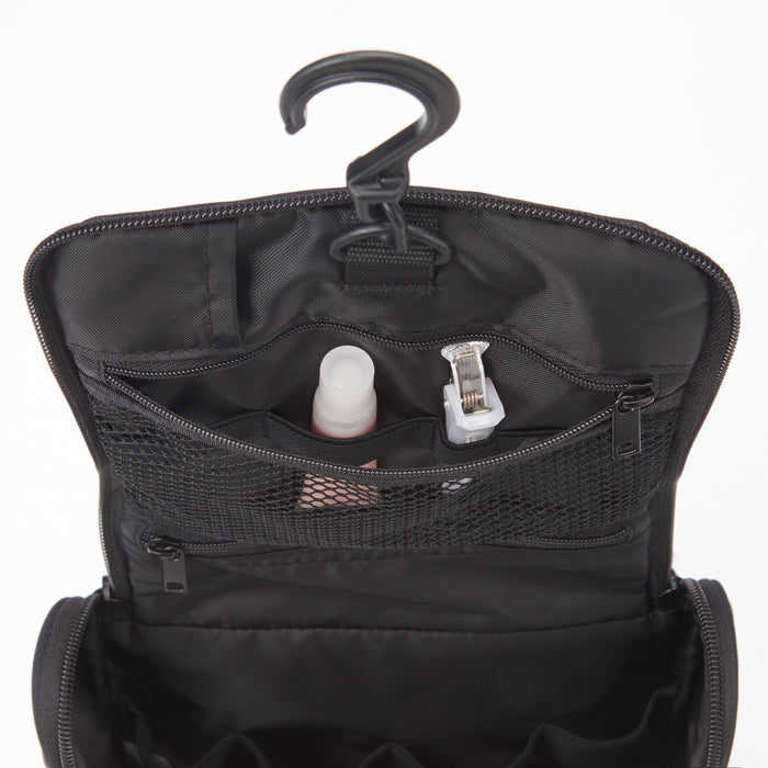 A compact case that is designed for travel. Simply hang this case onto an available surface or hook for an easy storage solution to keep all of your essentials close at hand. Great for carrying toiletries, and other small travel items.