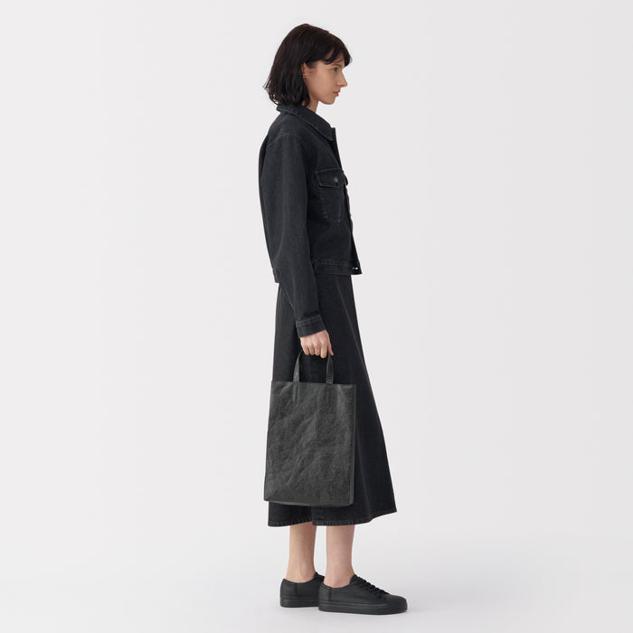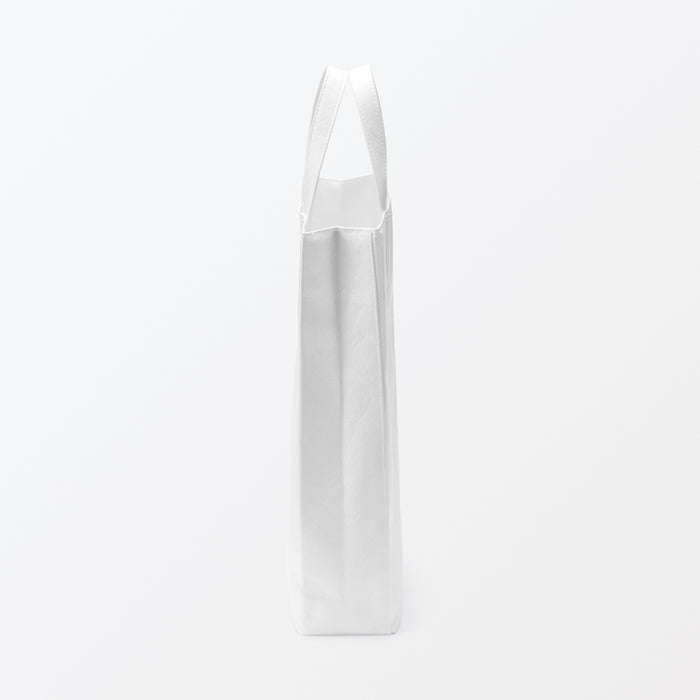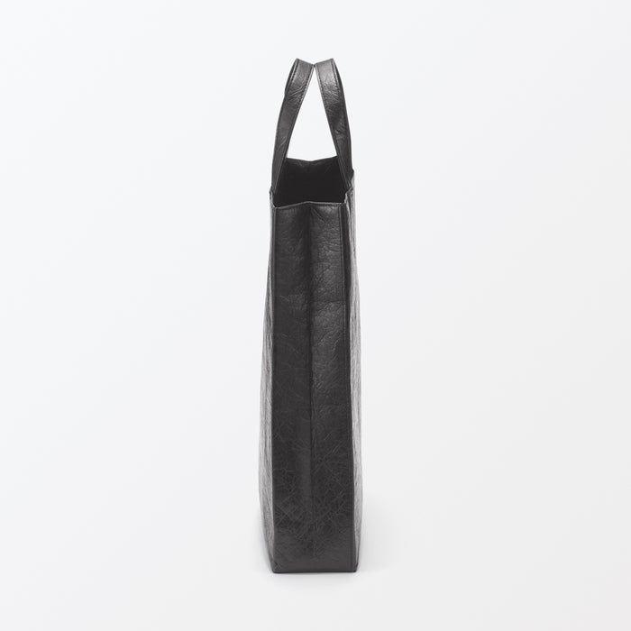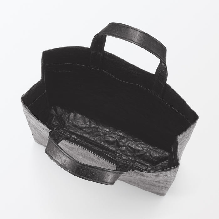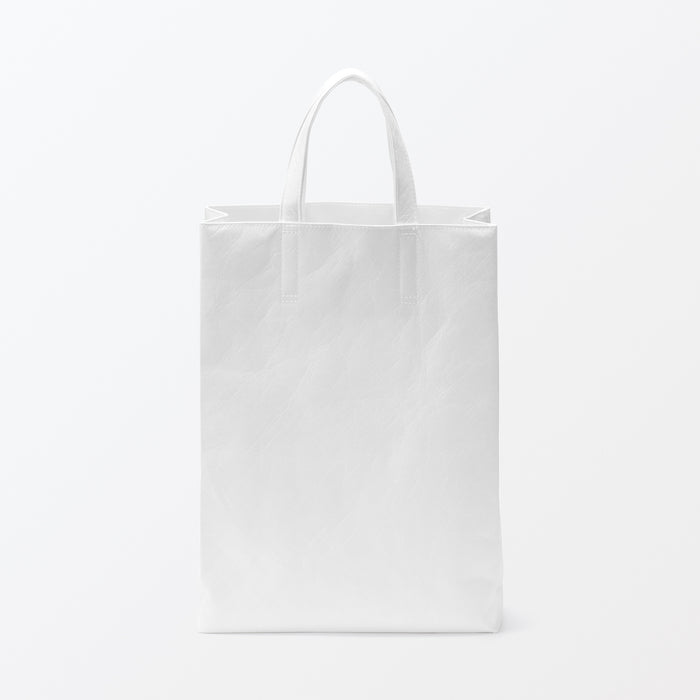 This tote bag is made using a high density non woven polyethylene material with a texture similar to Japanese Washi paper, which develops moderate amount of wrinkles with repeated use.
