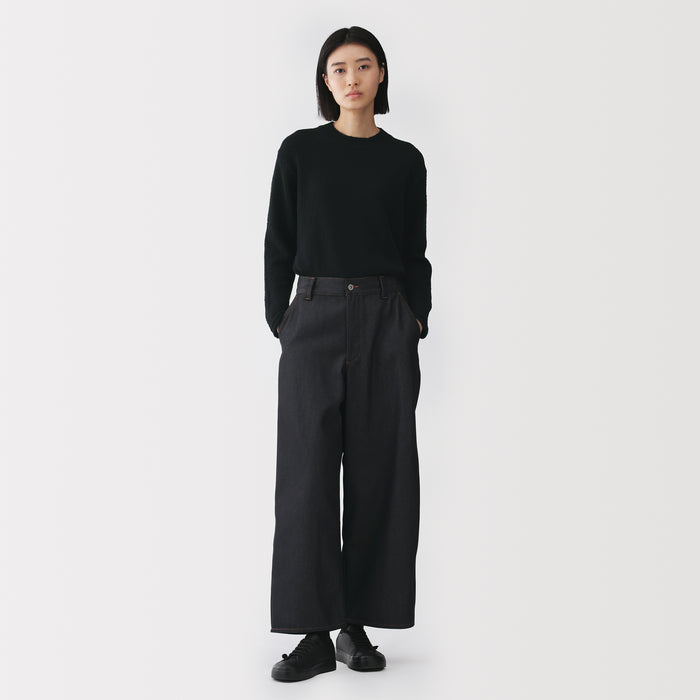 Made from recycled polyester made primarily from PET bottles, these women's denim barrel pants dry quickly and are resistant to color transfer. The legs have a loose and subtle curved silhouette that tapers at the ankle for a fit that is both comfortable and flattering on any body type.