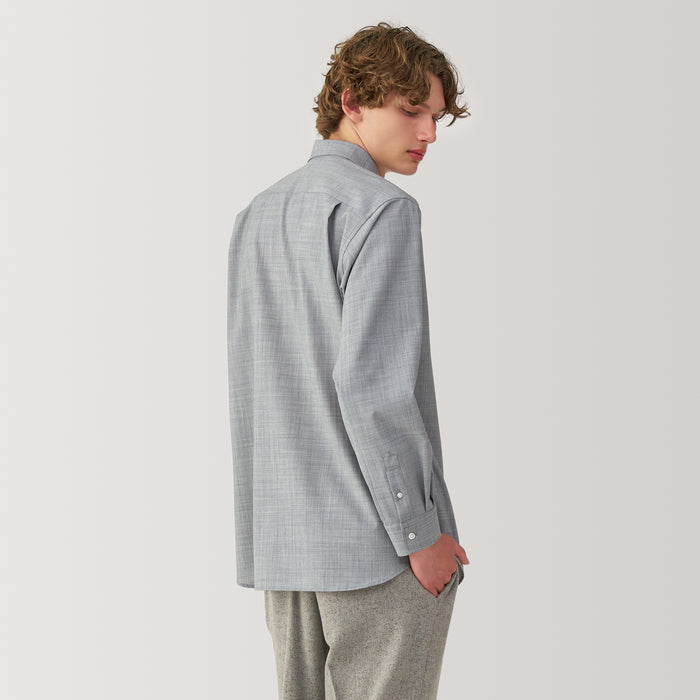 This button up shirt is made from a soft blend of wool and recycled polyester, offering both stretchiness and comfort for the perfect fit that's easy to move in. Thick enough to be worn on it's own or layered over another shirt.
