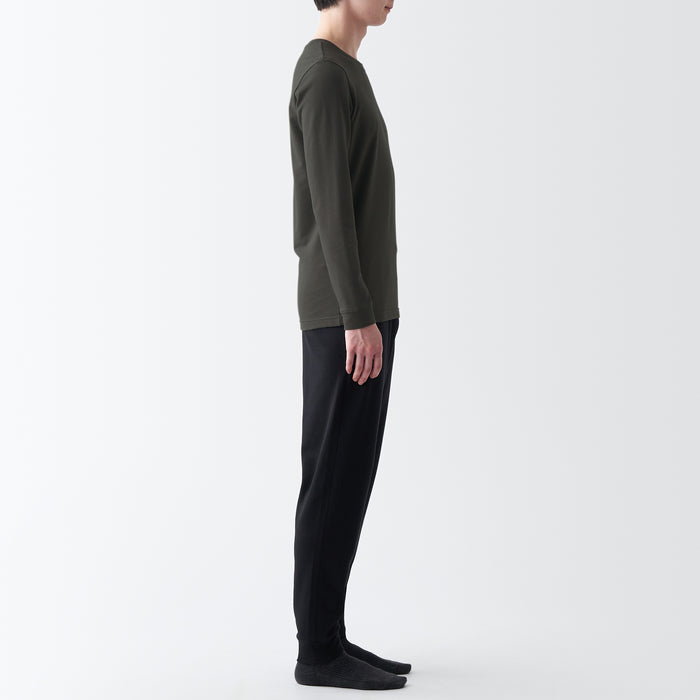 Stay warm and cozy with this long sleeve men's undershirt. Made with cotton, this shirt is both gentle on your skin and durable. It is designed to absorb sweat and moisture, keeping you warm in colder temperatures. It's also thick enough to be worn on its own, specially treated to enhance heat retention while maintaining the soft texture of cotton, lasting even after repeated washing.