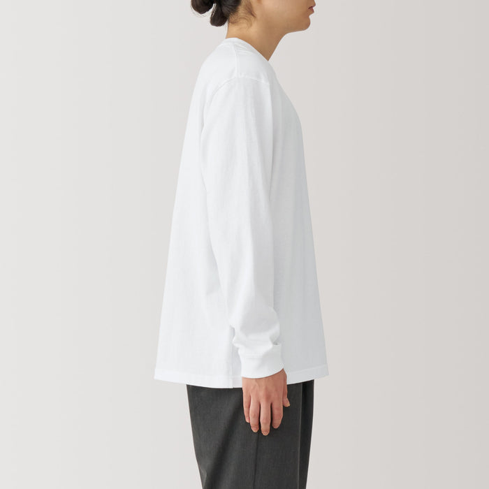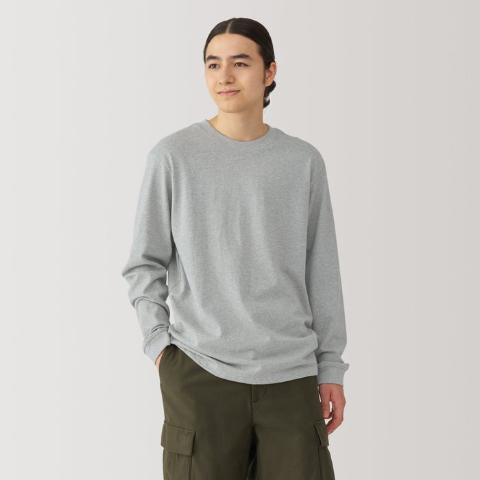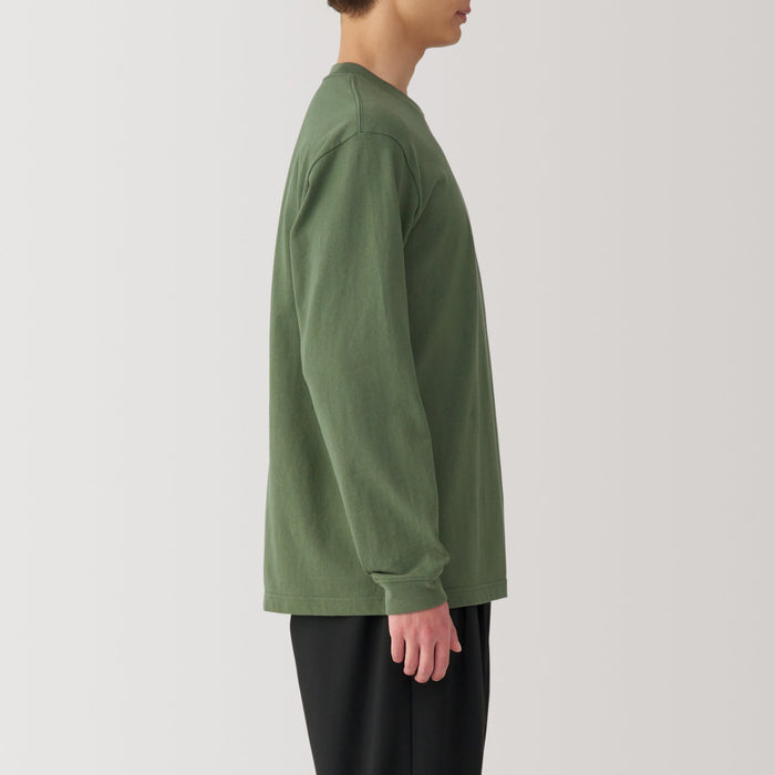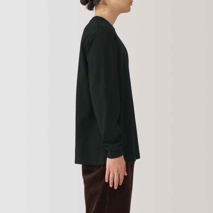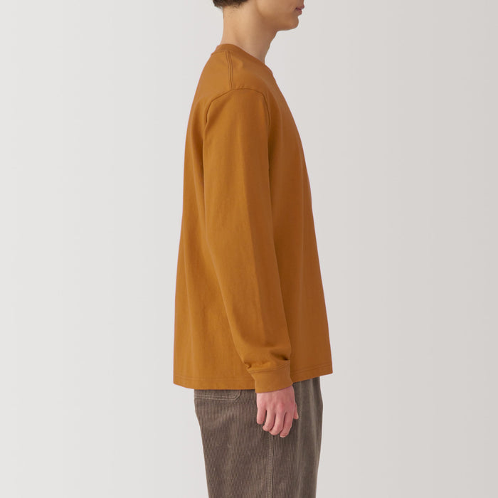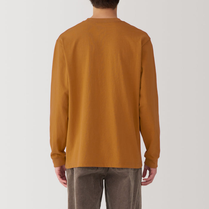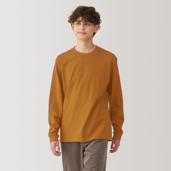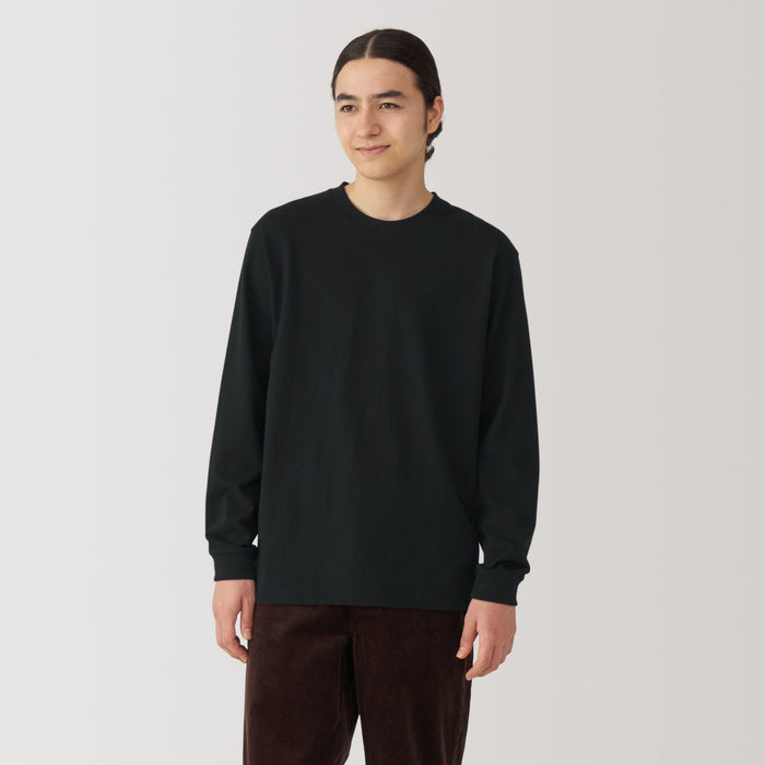 This long-sleeved t-shirt features a thick, densely knitted cotton fabric that provides durability and warmth during the colder months.