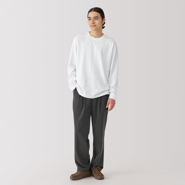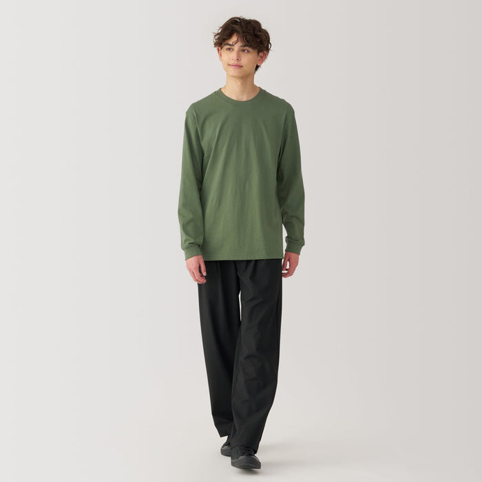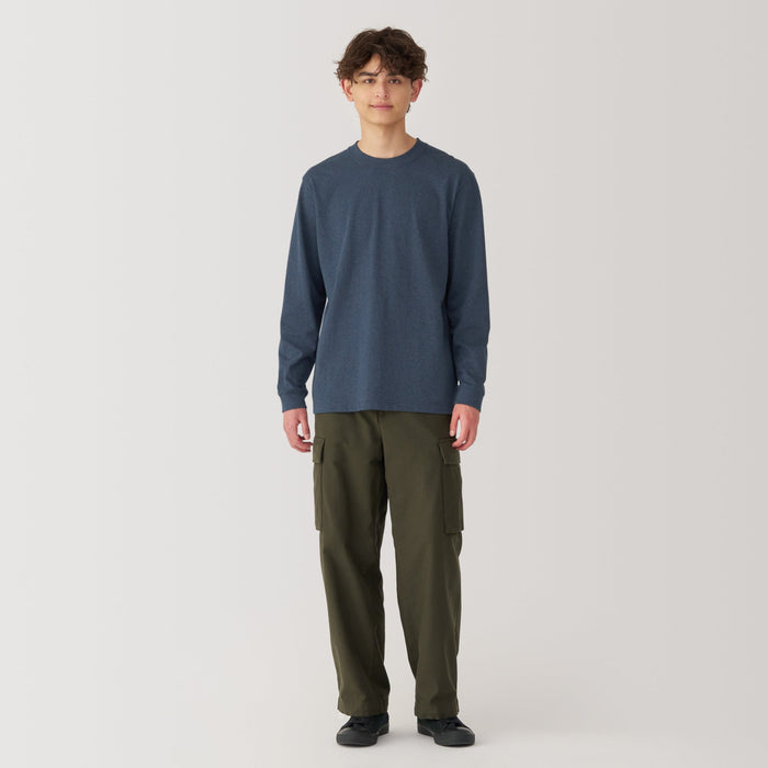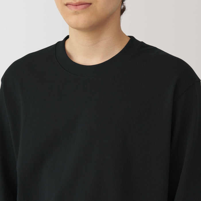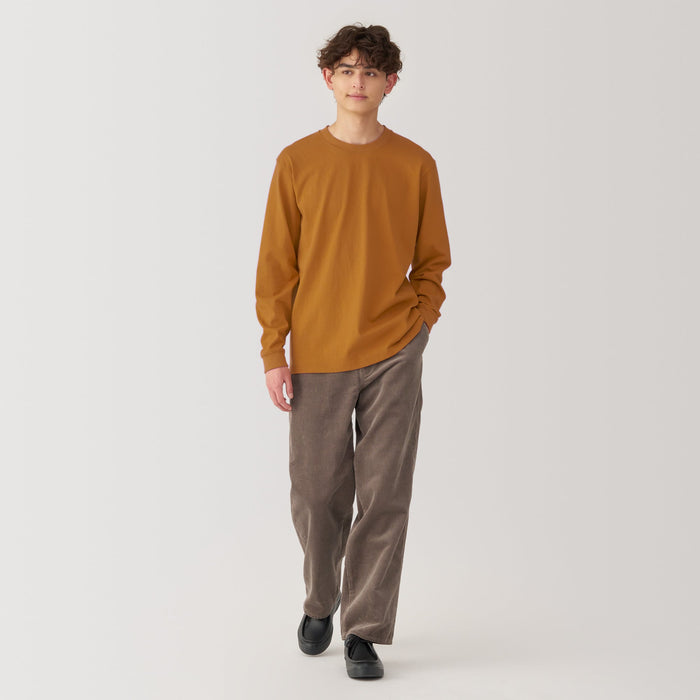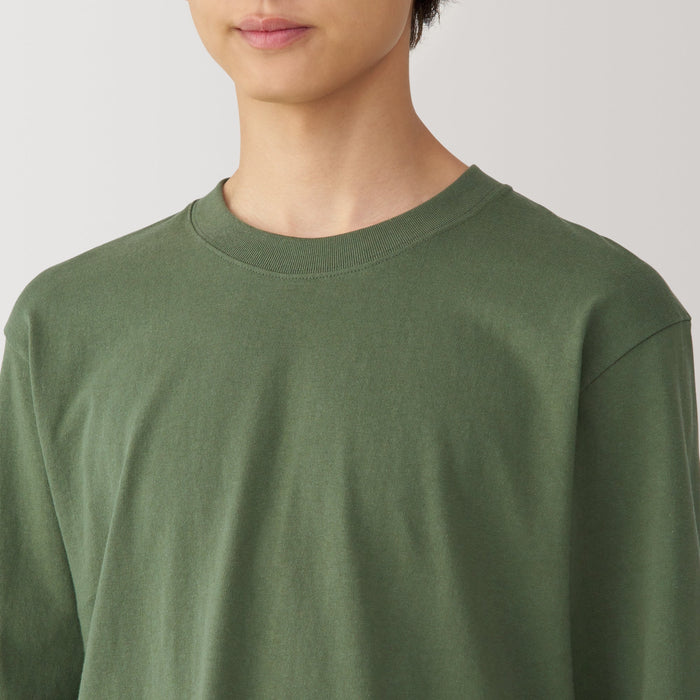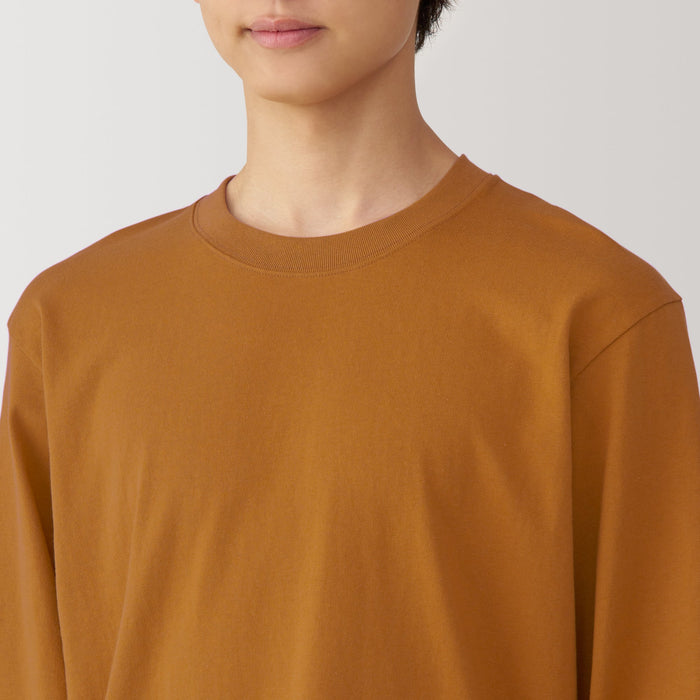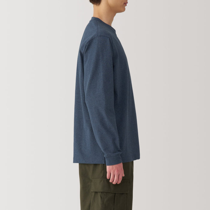 This long-sleeved t-shirt features a thick, densely knitted cotton fabric that provides durability and warmth during the colder months.