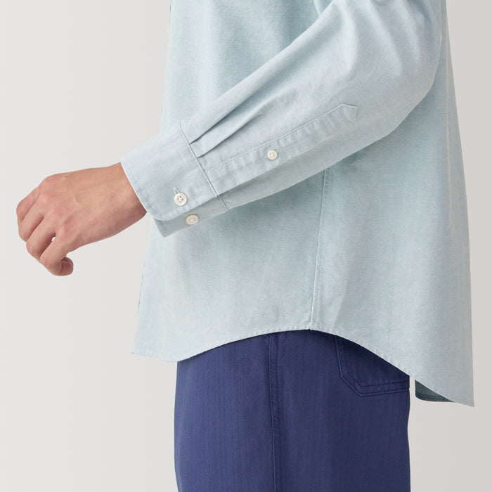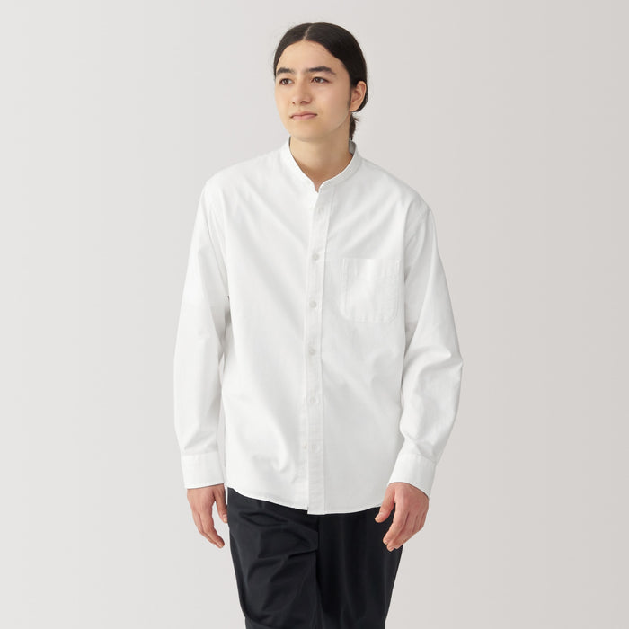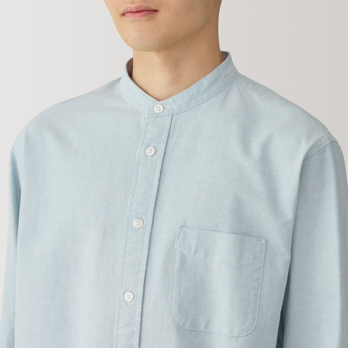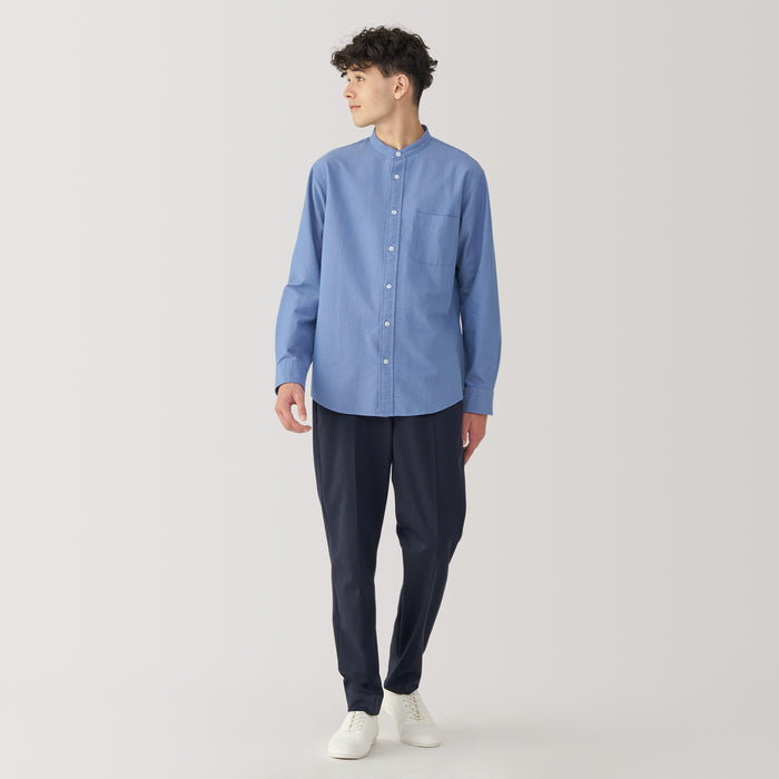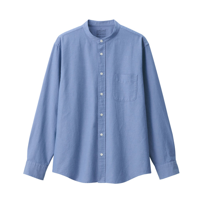 Men's Washed Oxford Stand Collar Long Sleeve Shirt