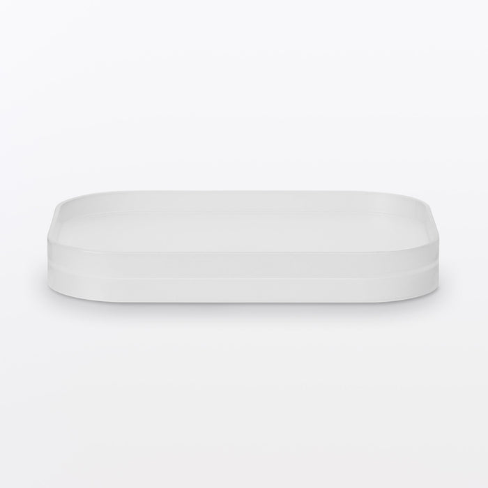 A sturdy small lid that fits a variety of our half width polypropylene makeup boxes. It is made from partially recycled translucent polypropylene that makes it easy to preview the contents inside, while also being easy to clean. The lid is designed with a bevel to make it easy to stack in combination with our other polypropylene makeup boxes, or it can be used standalone as a tray.
