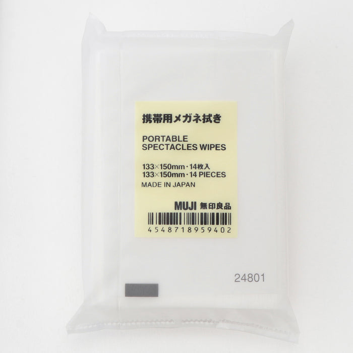 A pack of 14 dry disposable wipes for cleaning your glasses.