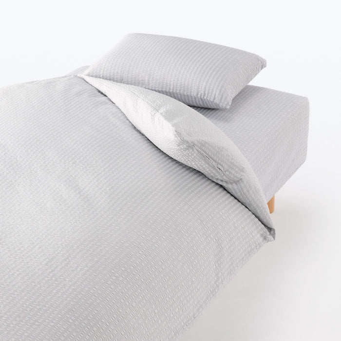 Experience cool and refreshing comfort with this seersucker fitted sheet. Its unique uneven texture prevents clinging to your skin, giving you a fresh and airy feeling even on warm nights. The texture also improves breathability and prevents warm air from getting trapped in the fabric, allowing you to sleep comfortably without stuffiness.