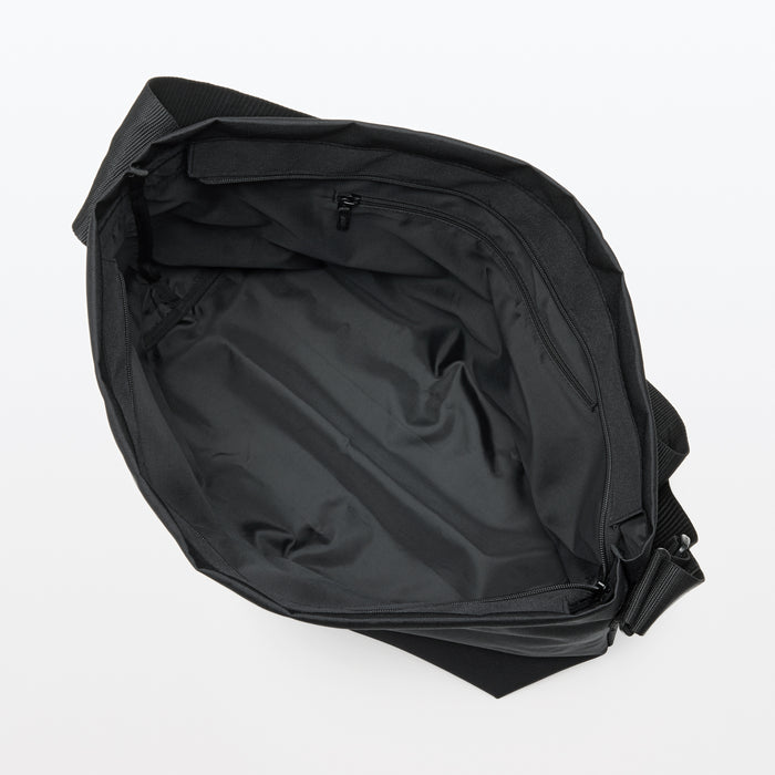 This water-resistant shoulder bag is large enough to carry all of your essentials. Versatile for any occasion, whether it's for school, work, or travel. The interior has an extra zippered pocket, and the belt is adjustable for convenience. The strap is thick enough that it rests on your shoulders comfortably without digging in.