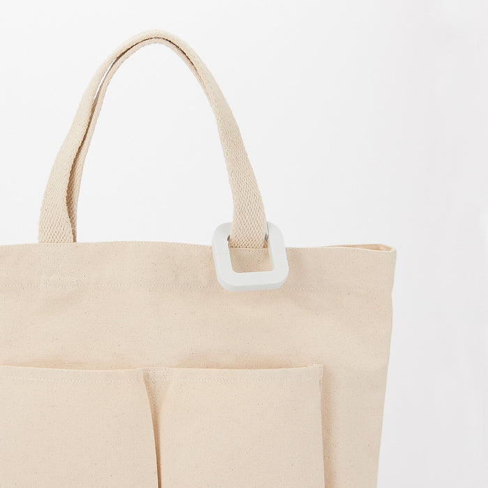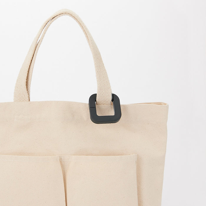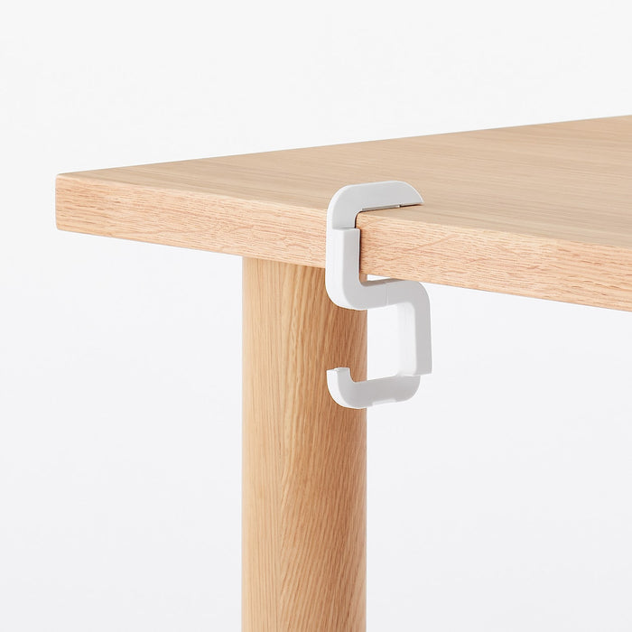 A foldable S-shaped hook, which is convenient for hanging bags on-the-go, and organizing small items such as pouches. The hook has anti-slip patches so you can use it to hang items off a tabletop without them falling.