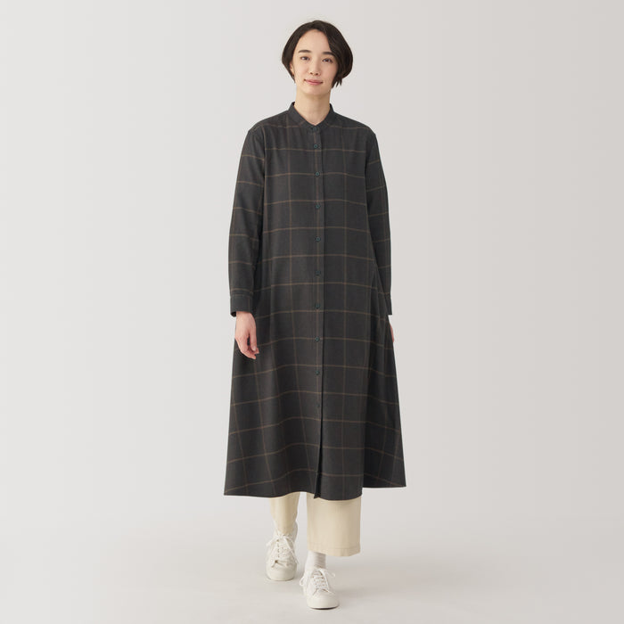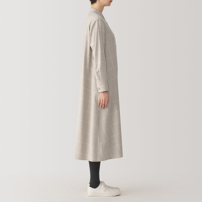 Women's Flannel Stand Collar Long Sleeve Patterned Dress
