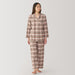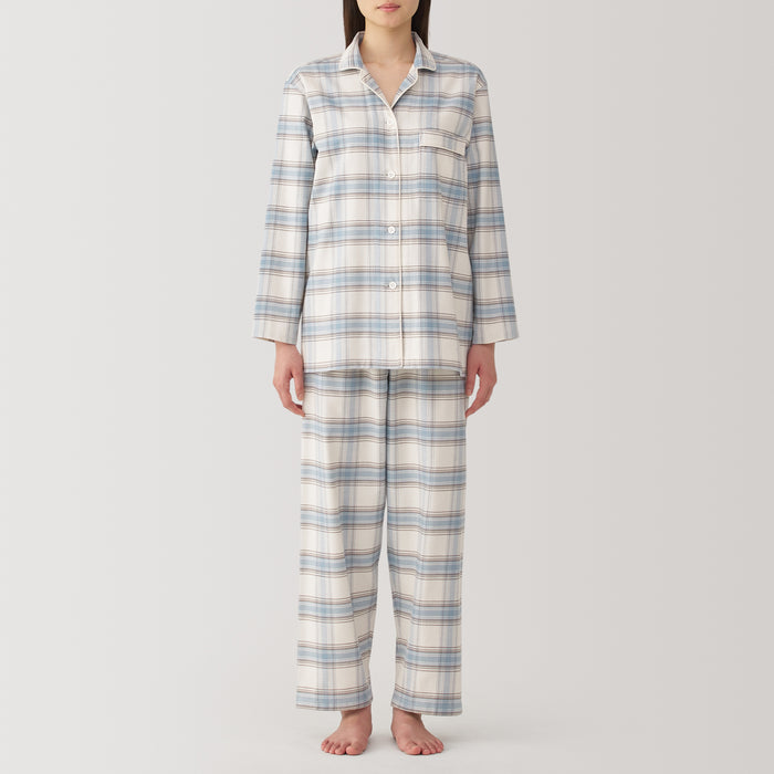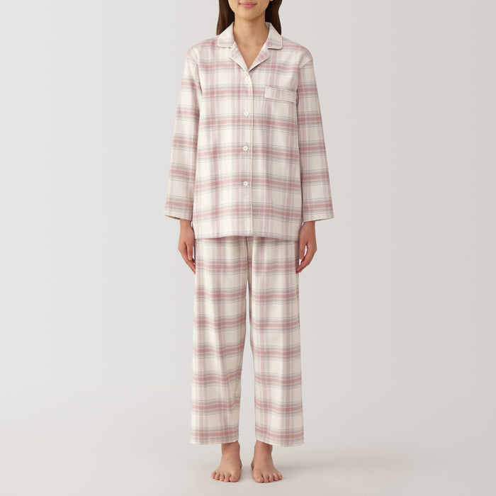 This flannel pajama set is made with organic cotton, creating an incredibly soft and comfortable feel on your skin. The loose, relaxed fit ensure that you won't feel restricted. These pajamas are designed with side seams removed for a more enjoyable sleep.